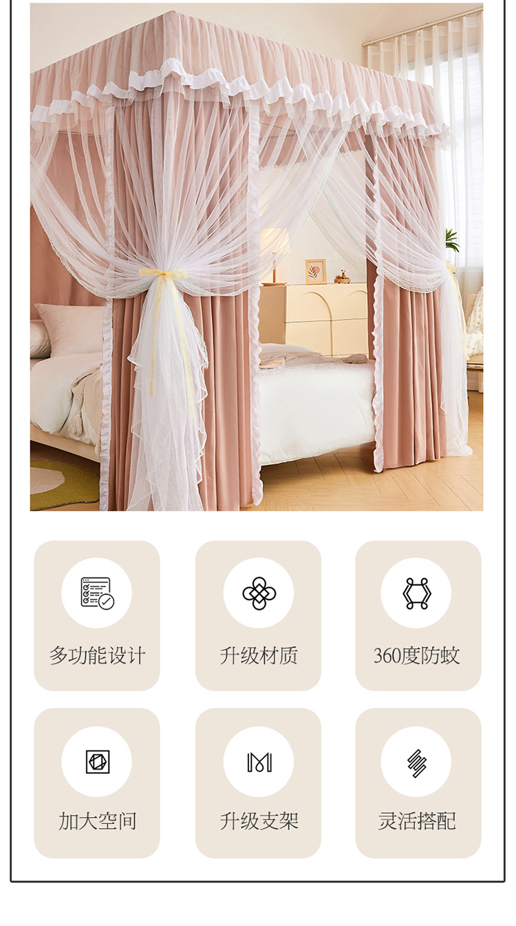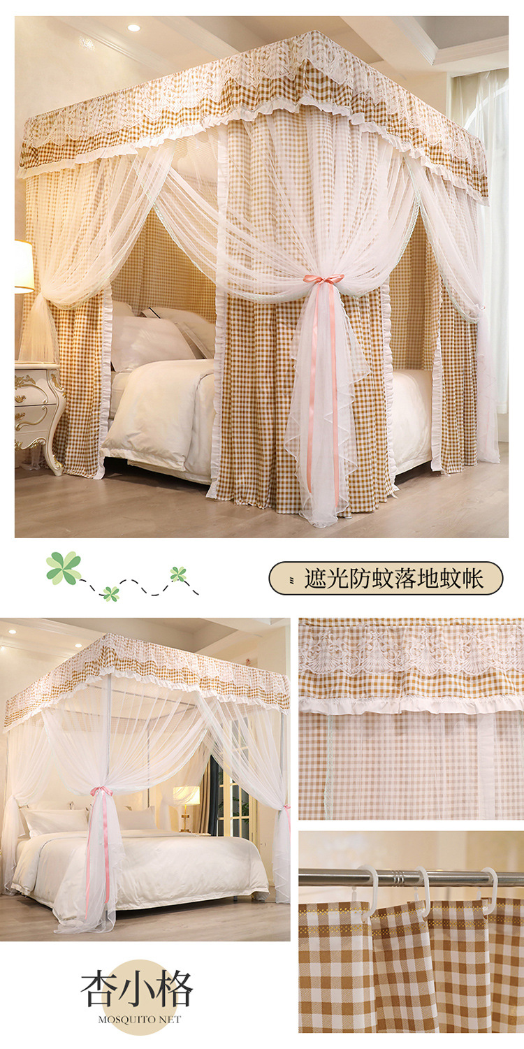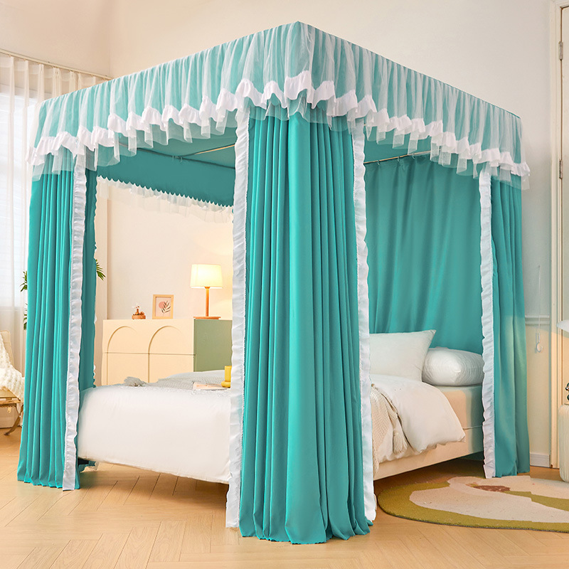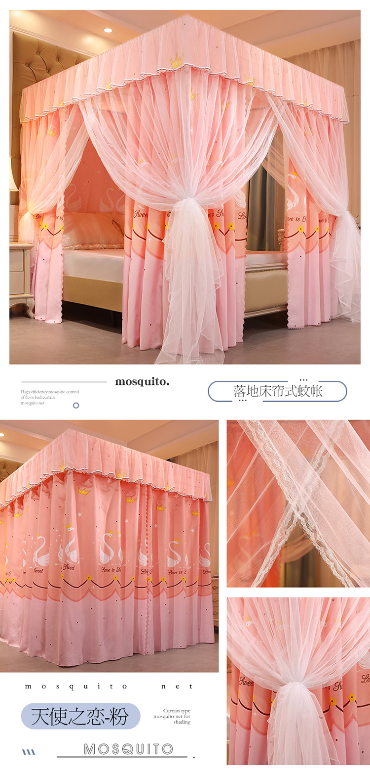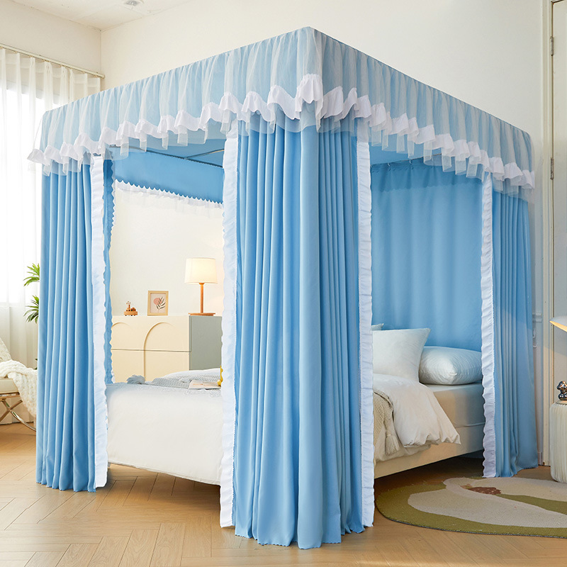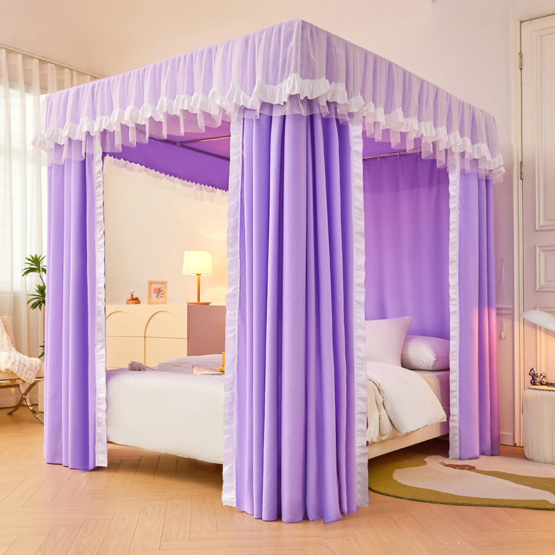 차광 궁전 모기장 침대 커튼 공주 스타일 밀폐형 일체형 방진 플로어 스탠딩 더블 침대 홈 공주스토어 가기