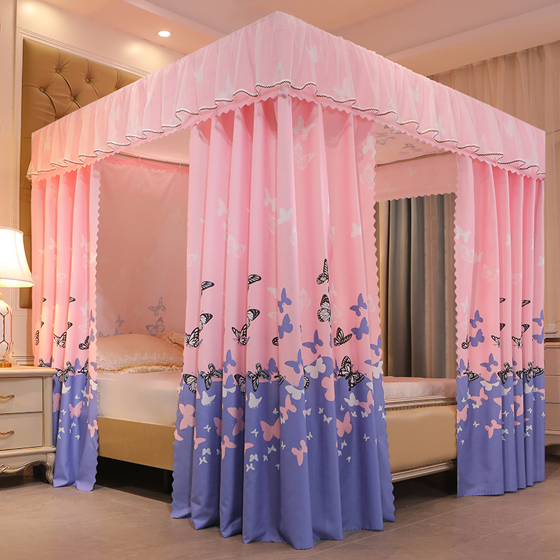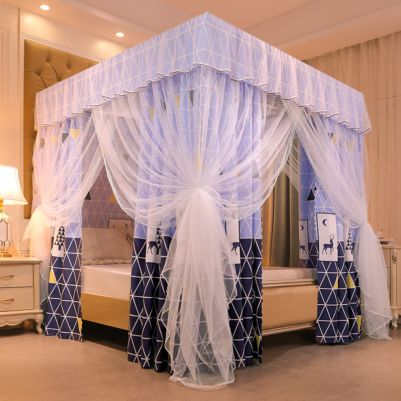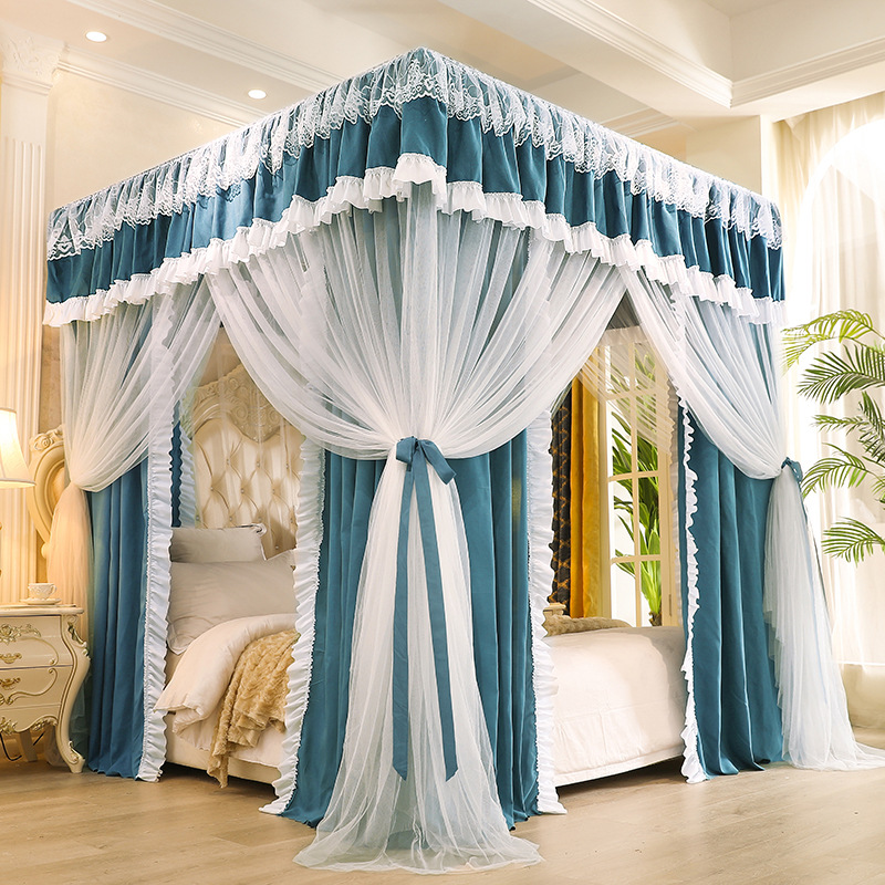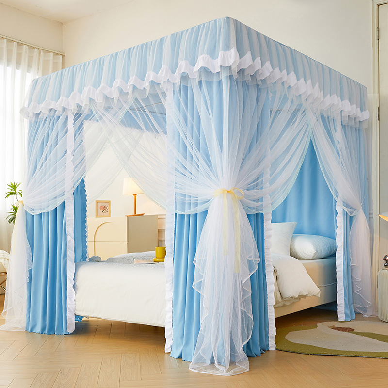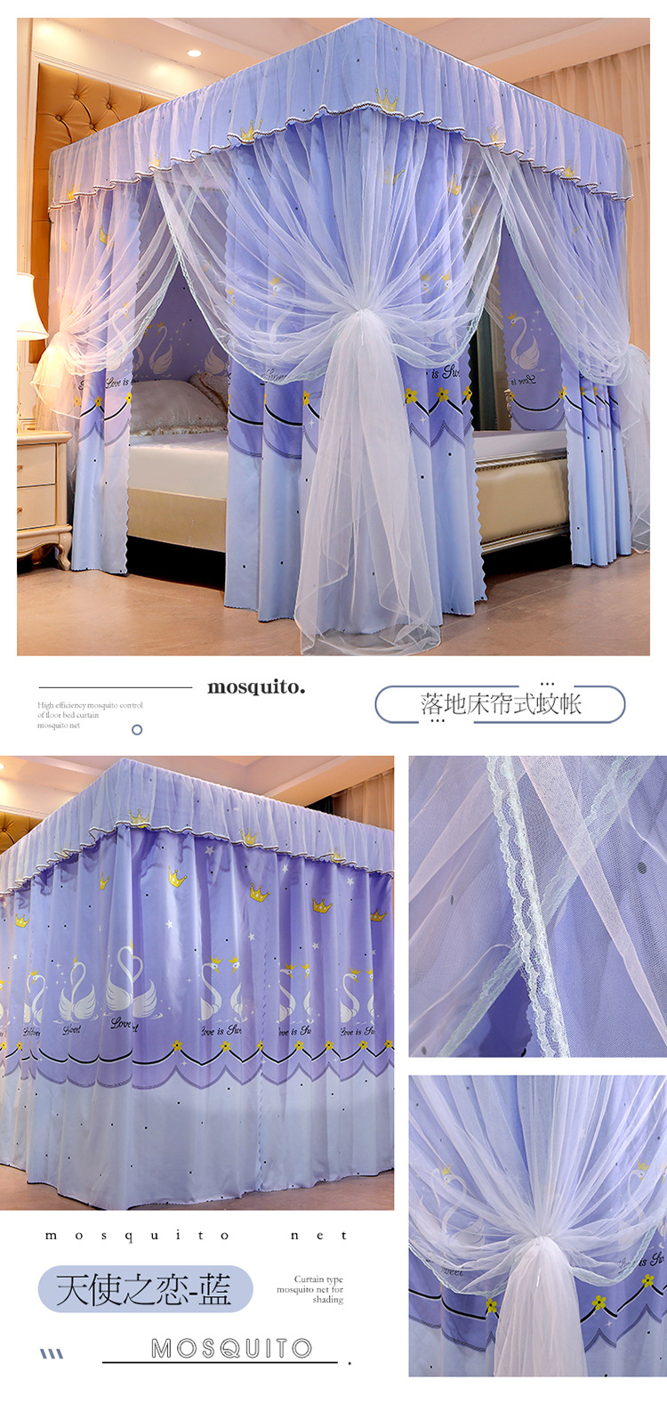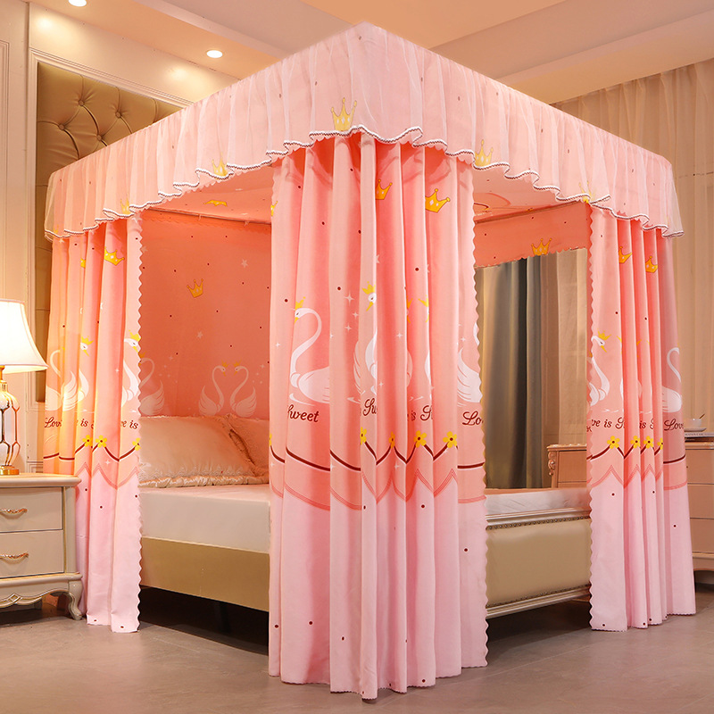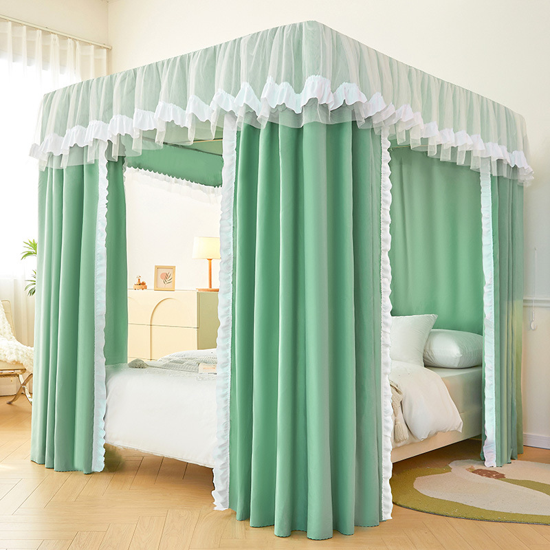차광 궁전 모기장 침대 커튼 공주 스타일 밀폐형 일체형 방진 플로어 스탠딩 더블 침대 홈 공주스토어 가기