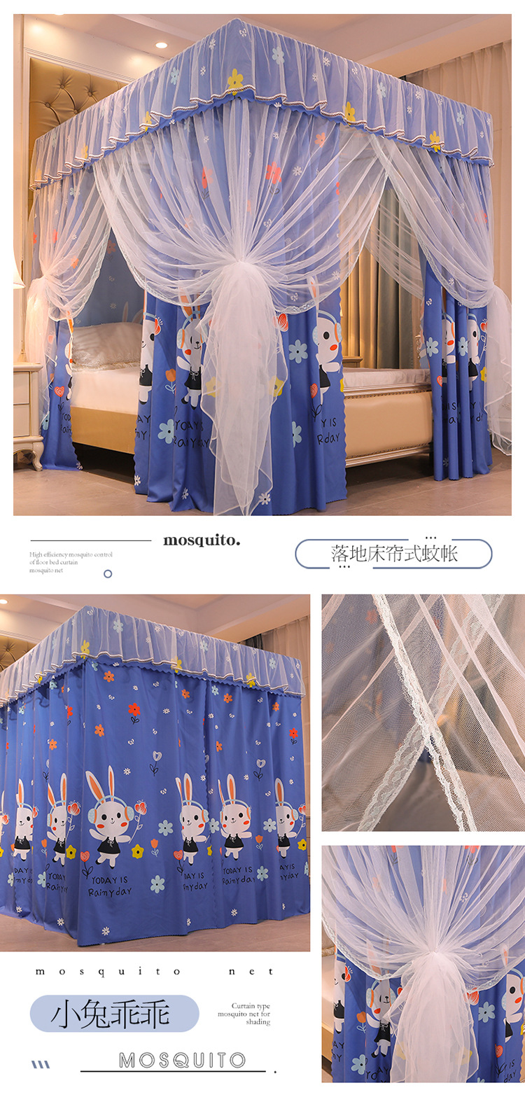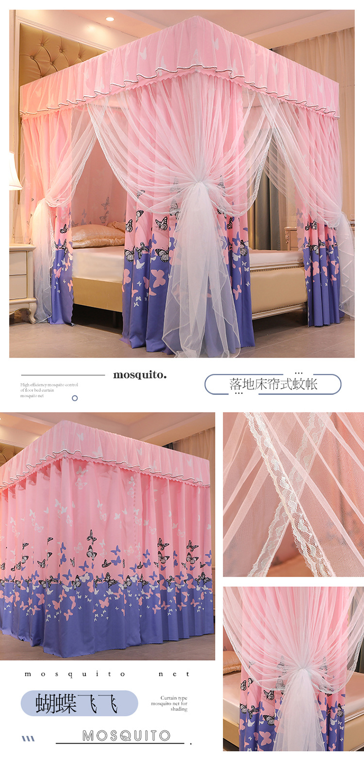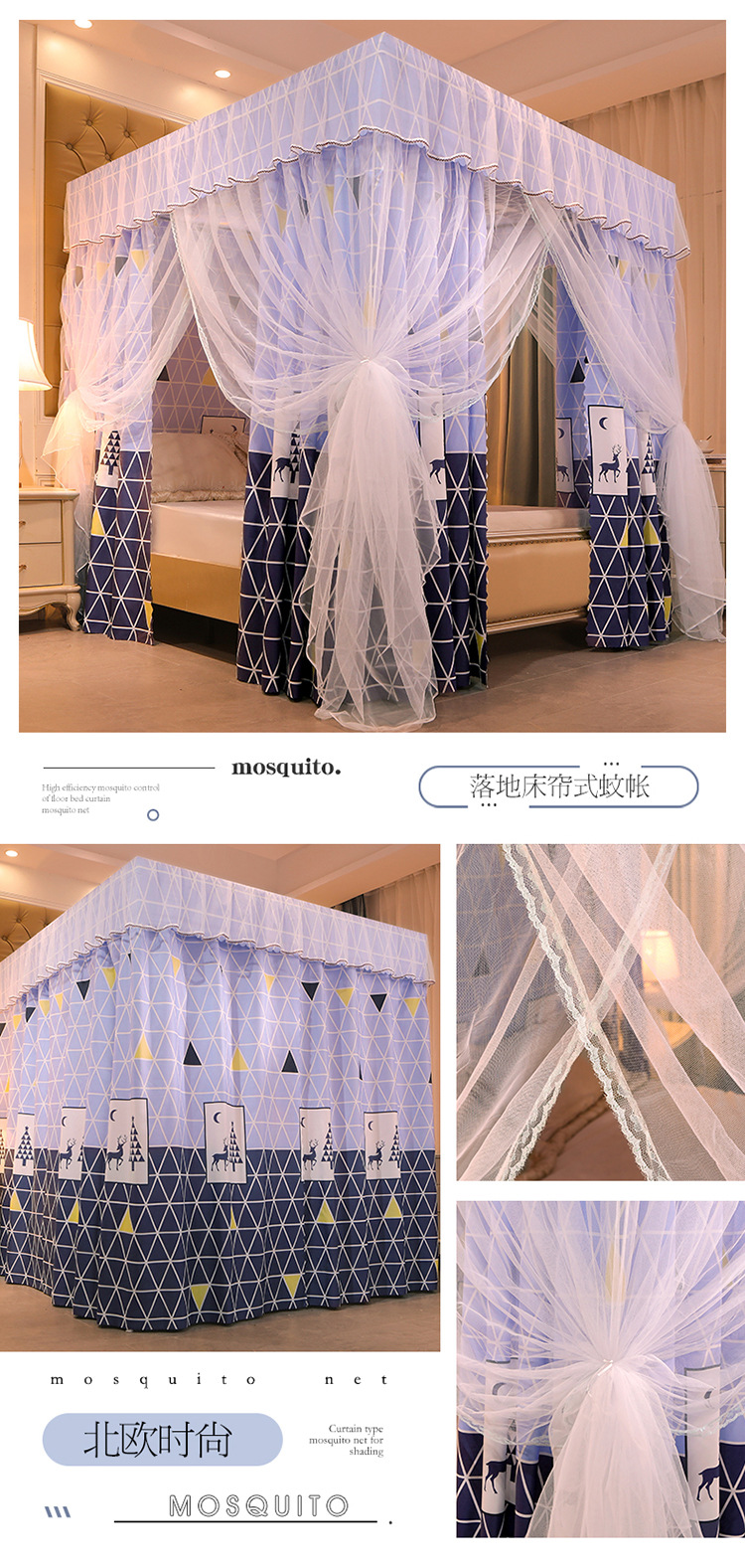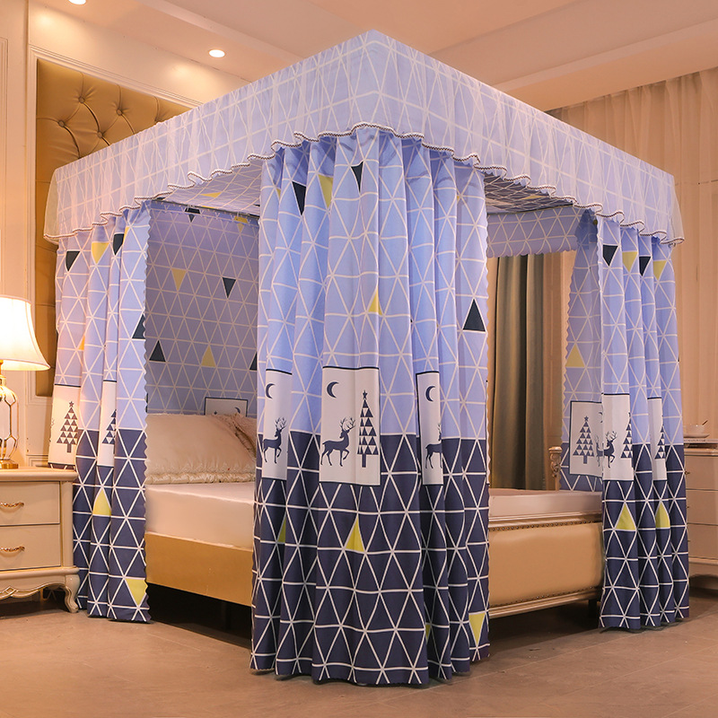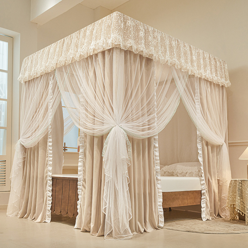 차광 궁전 모기장 침대 커튼 공주 스타일 밀폐형 일체형 방진 플로어 스탠딩 더블 침대 홈 공주스토어 가기