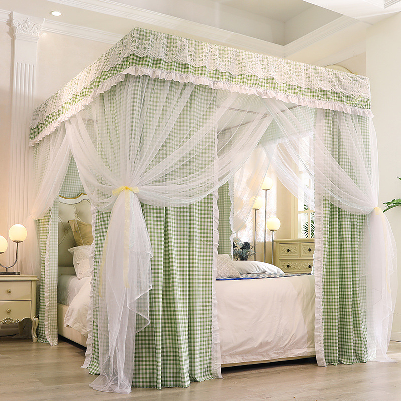 • 녹색 작은 격자 [침대커튼+브래킷+모기장]