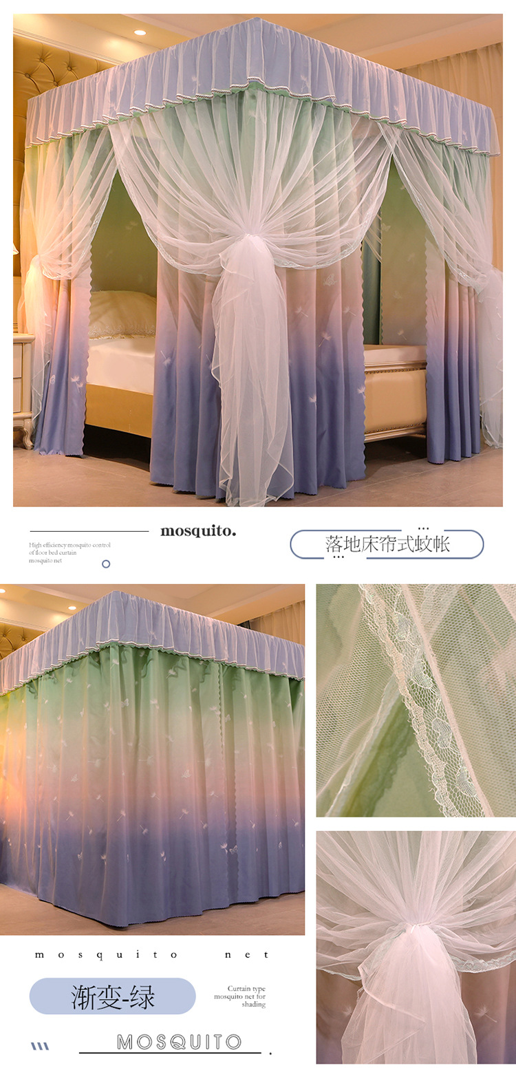 차광 궁전 모기장 침대 커튼 공주 스타일 밀폐형 일체형 방진 플로어 스탠딩 더블 침대 홈 공주