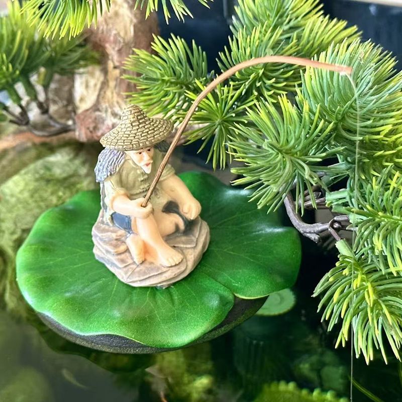 수조 조경, 진 타공 낚시꾼 장식품, 물고기를 먹이기 위해 떠다니는 노인, 공중에 뜨는 마이크로 풍경 회전 장식품