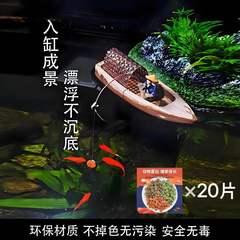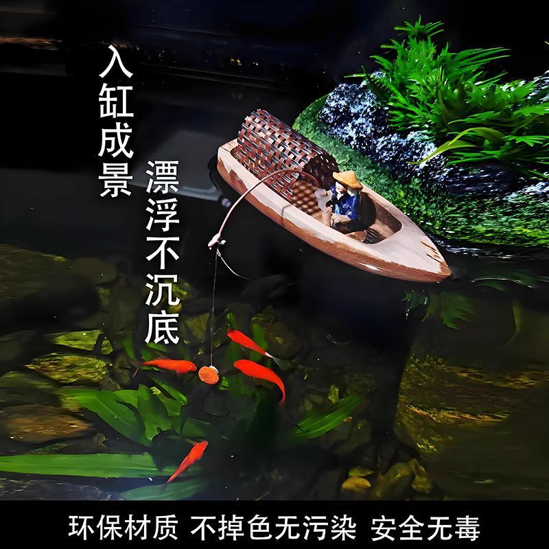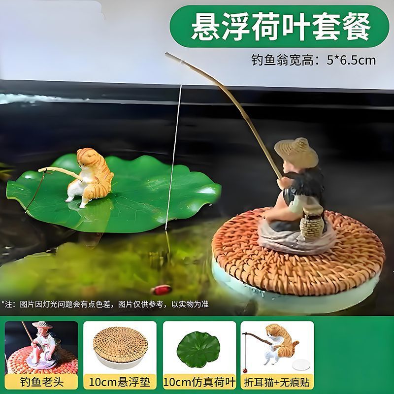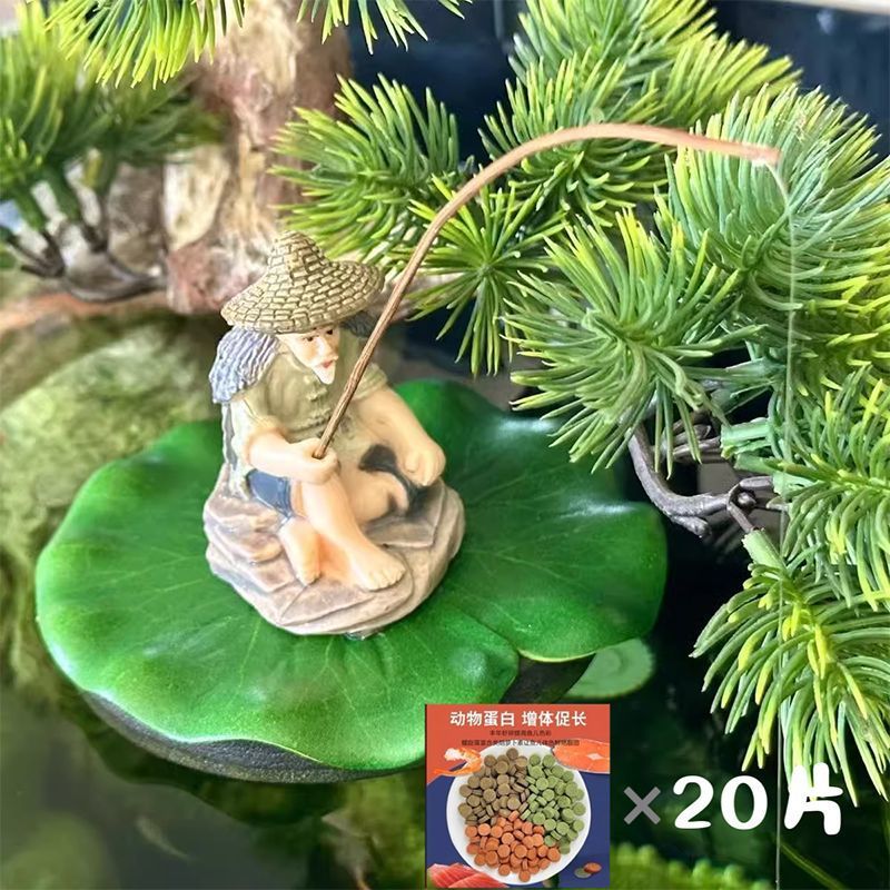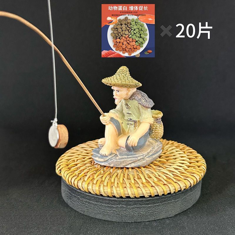 수조 조경, 진 타공 낚시꾼 장식품, 물고기를 먹이기 위해 떠다니는 노인, 공중에 뜨는 마이크로 풍경 회전 장식품스토어 가기