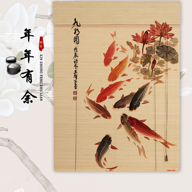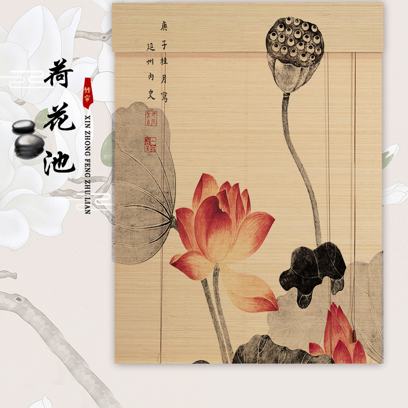 대나무 커튼 롤러 블라인드, 고풍스러운 중국식 지붕, 손으로 당기는 방식, 직공급, 빛 투과형 B&B, 서재, 호텔 거실, 펀칭 없이 차양막스토어 가기