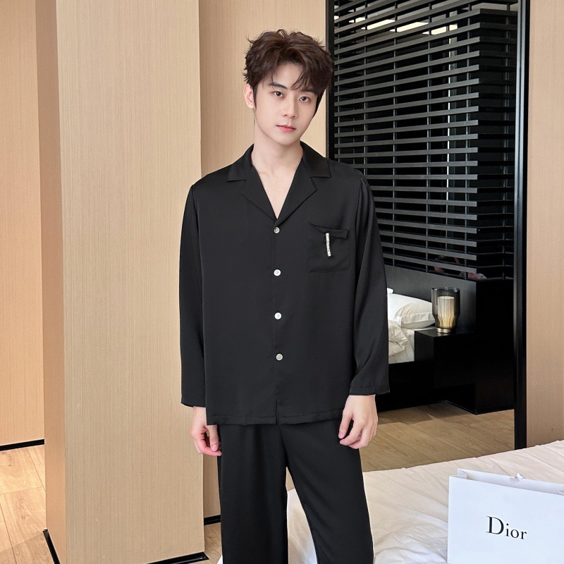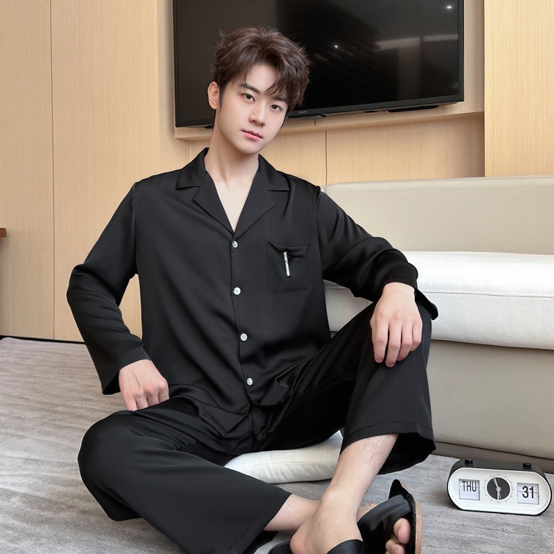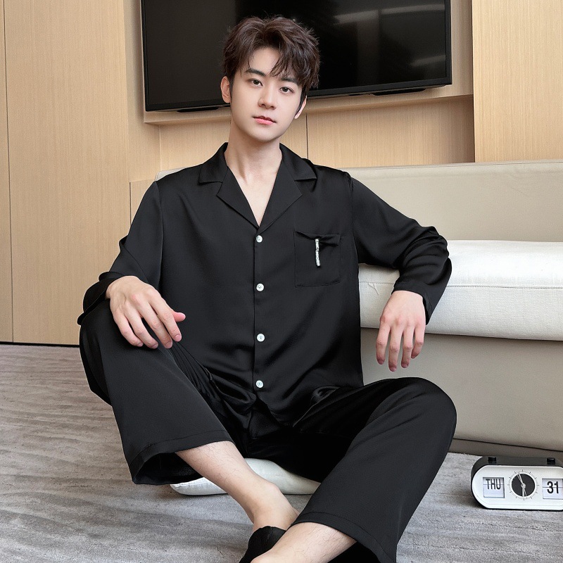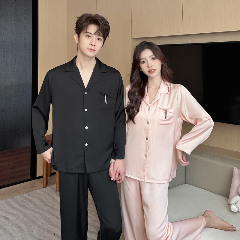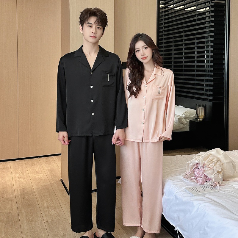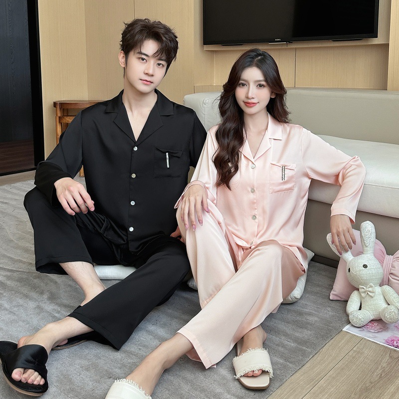 커플 잠옷 여성 봄, 가을 실크 긴팔 양복 심플 라이트 럭셔리 스타일 편안한 실키 홈웨어 연령 감소