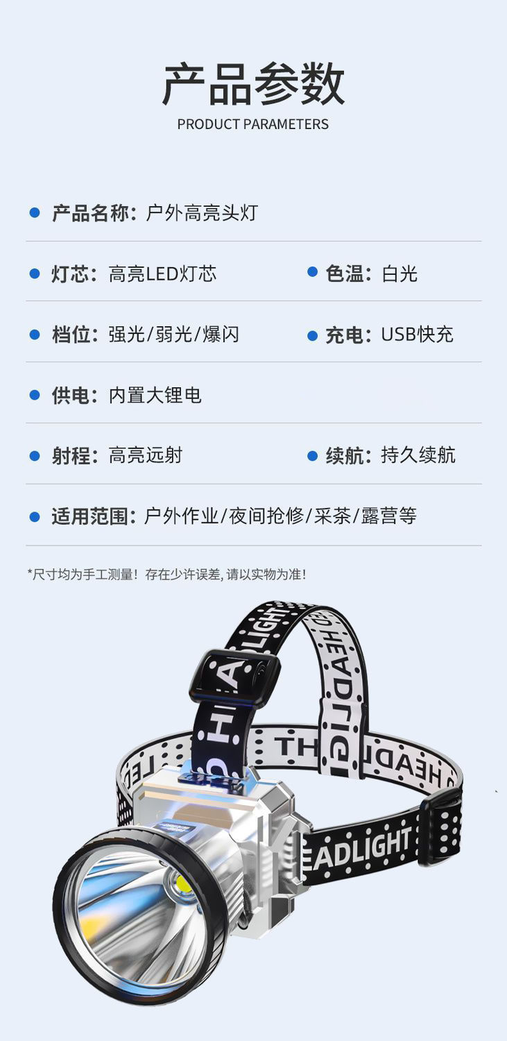 • 백색광 [10년 보증 + 고속 충전 + 전자 디스플레이] - Explosive 58800K + 헤드밴드 + 충전 케이블