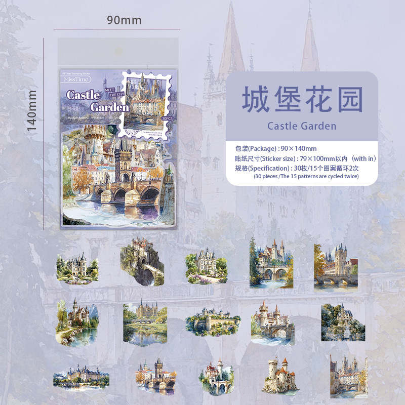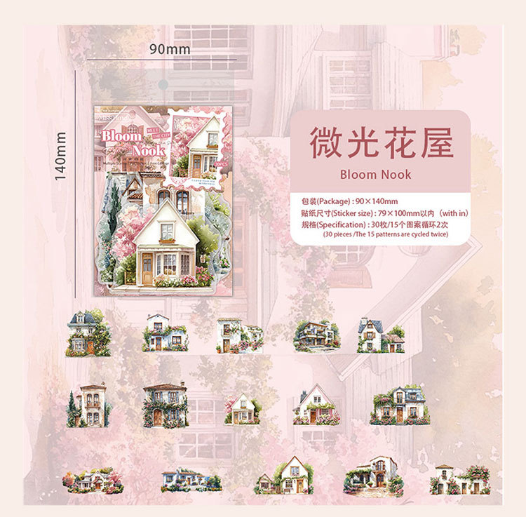 라이트컬렉션 PET 스티커 팩 풍경 시리즈 30개 라이트 레트로 하우스 테마 소재 조경 베이스 스티커
