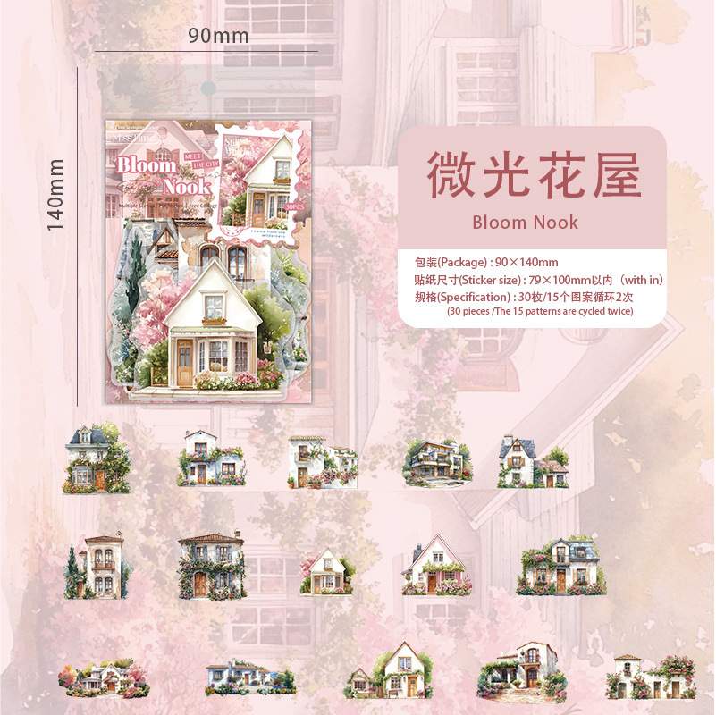 라이트컬렉션 PET 스티커 팩 풍경 시리즈 30개 라이트 레트로 하우스 테마 소재 조경 베이스 스티커스토어 가기