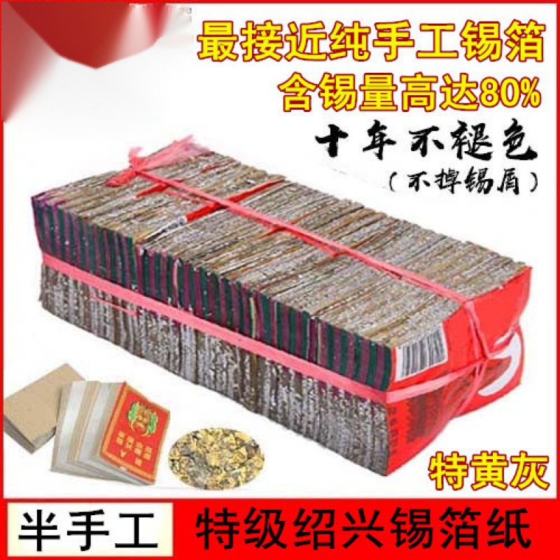 공장 직접 판매 정통 Shaoxing 진짜 주석 호일 1000 금색과 은색 종이 노란색과 회색 반 수제 주괴 연소 종이 돈