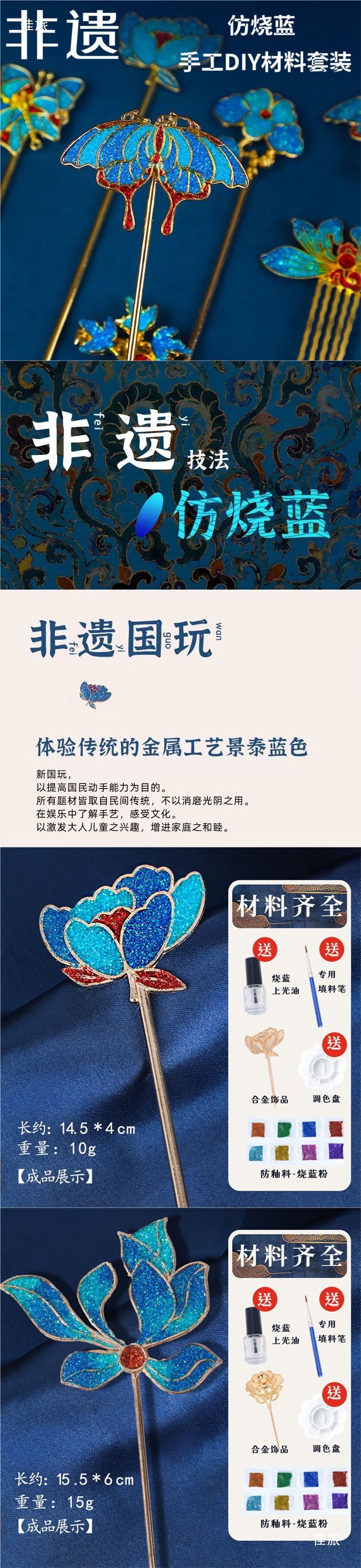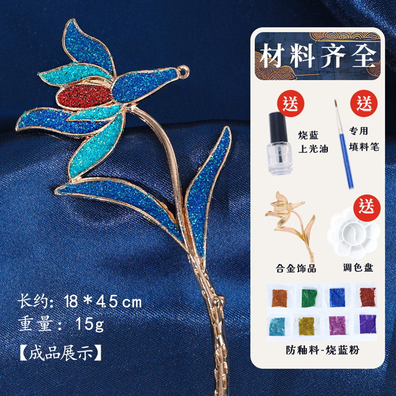 • 모조 번트 블루 머리핀(1) 완전한 재료 패키지 모조 버전