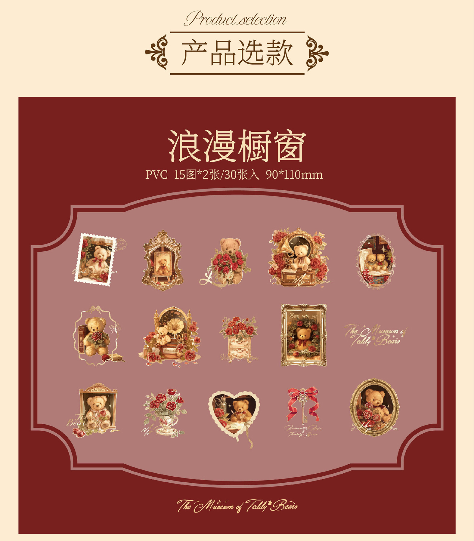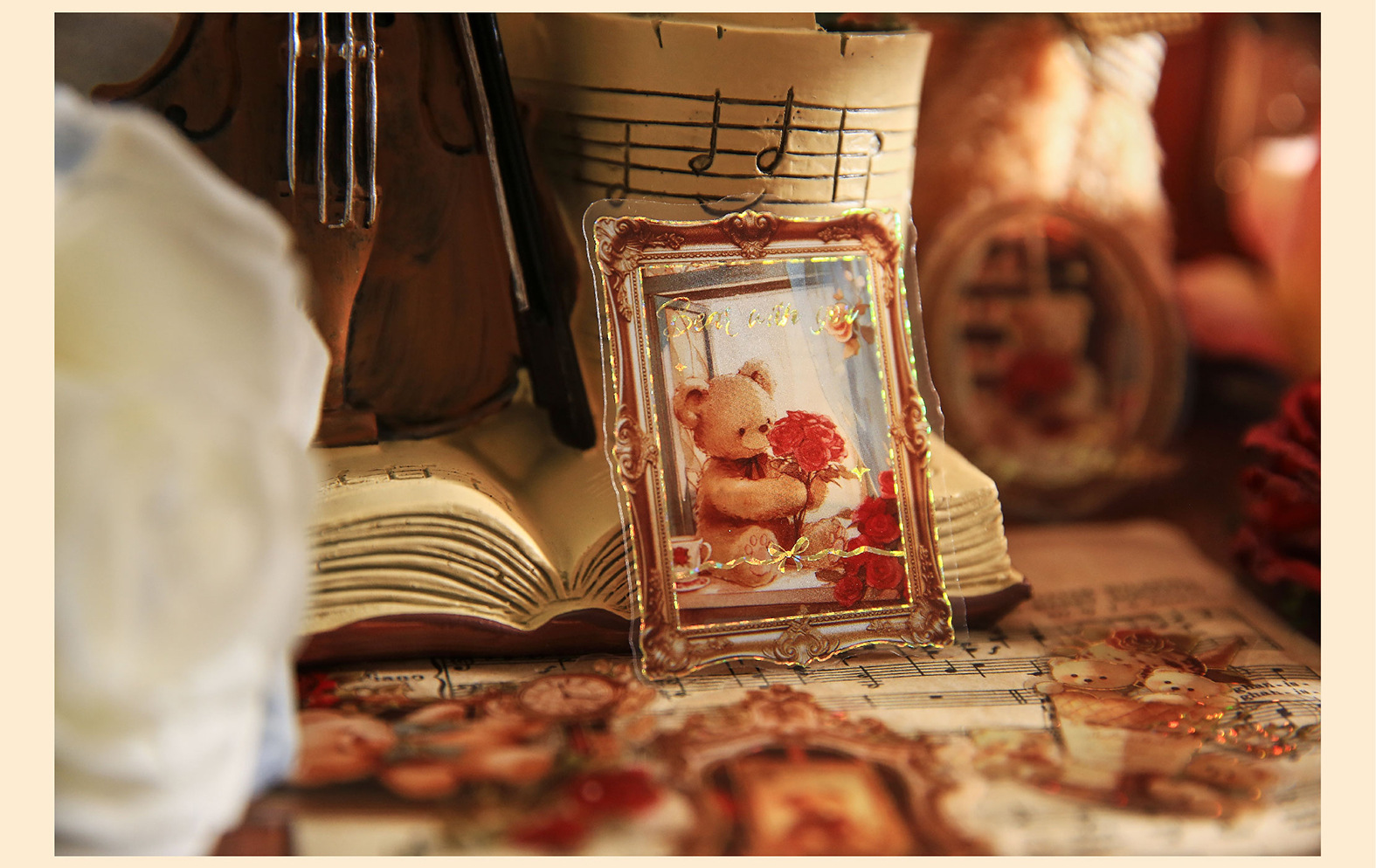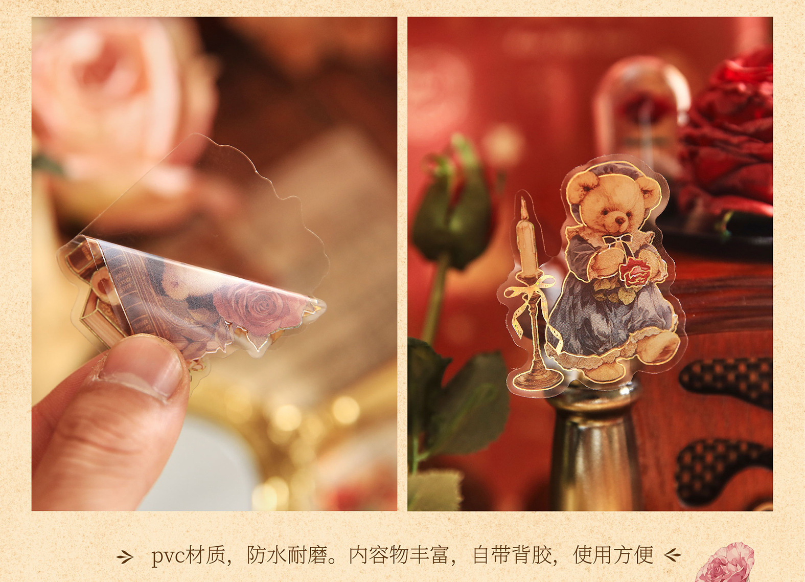 Mr. Paper PVC 스티커 팩 곰 로맨틱 하우스 시리즈 복고풍 다목적 소재 휴대 전화 케이스 핸드북 diy 콜라주