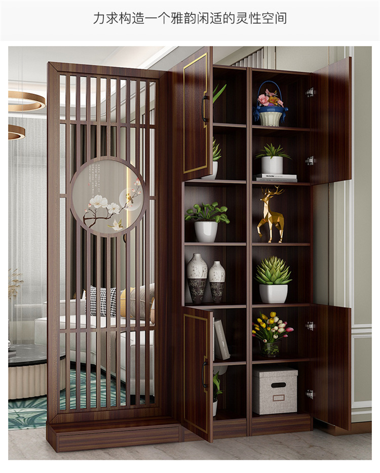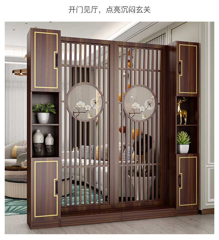 거실 새로운 중국 스타일 스크린 파티션 장식 벽 차단 단단한 나무 선반 중공 현대적인 조명 럭셔리 입구 캐비닛스토어 가기