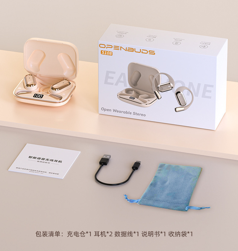 국경 간 블루투스 헤드셋 2025 새로운 스마트 AI 음성 OWS 귀걸이 형 S108 슈퍼 롱 라스팅 기타/기타스토어 가기