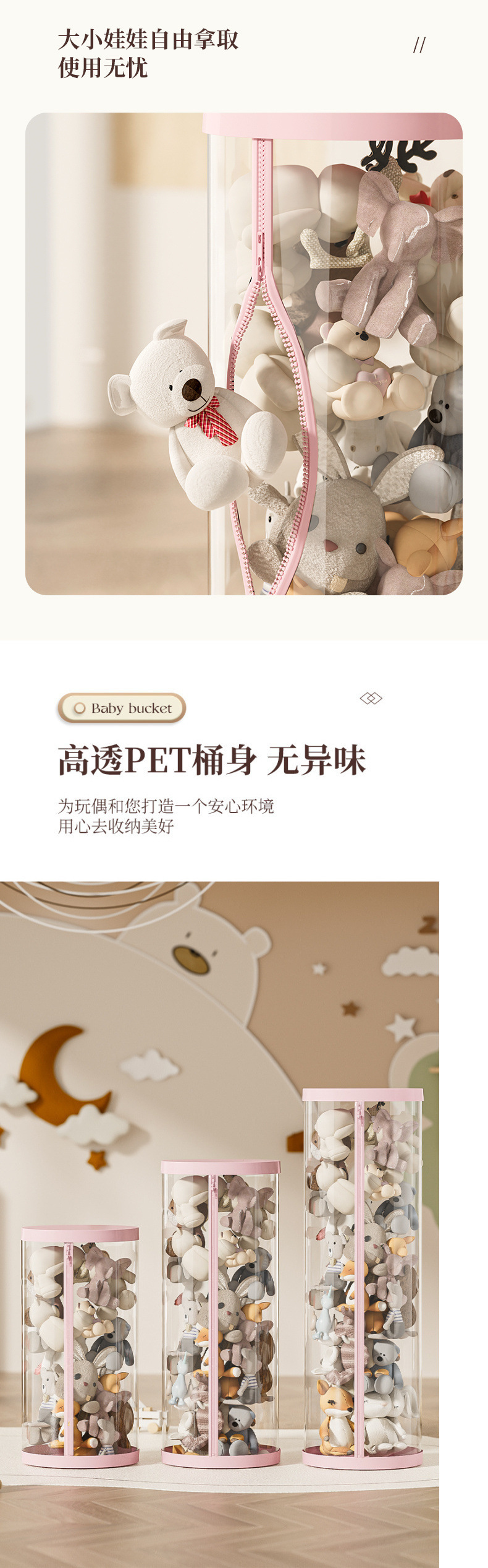 라이트가있는 봉제 인형 보관통 투명 보관통 어린이 인형 인형 보관 랙 투명 실린더
