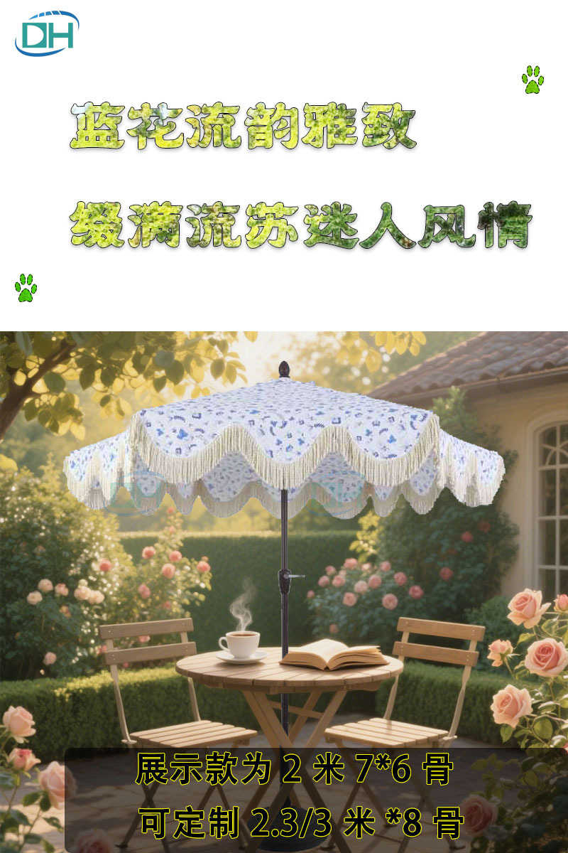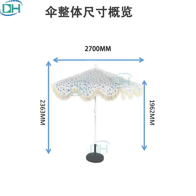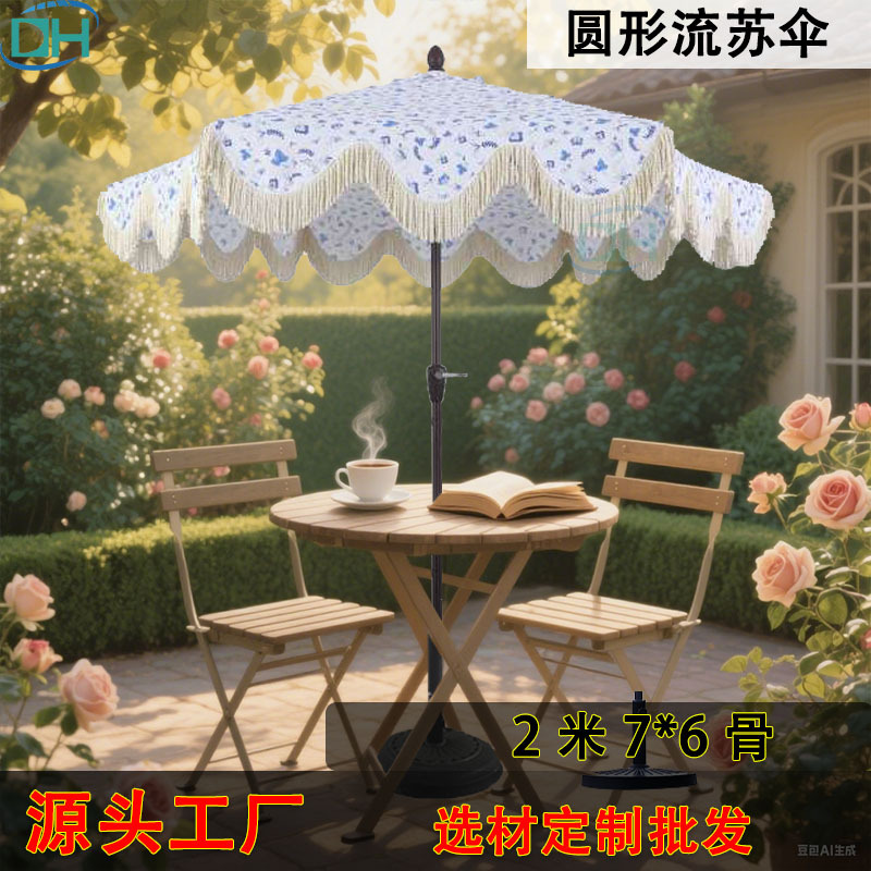 태양광 차양 우산, 프린지 장식 중간 기둥 우산, 유럽풍 정원용 해외 무역 비치 가든 우산, 야외 레저 맞춤형 360도 회전스토어 가기