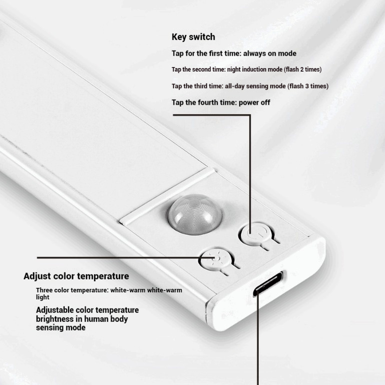 고양이 눈 센서 램프, 힐 램프, 리플 램프, 충전식 조광, 무단계 조광 캐비닛 램프, 센서 램프, 사람들이 오면 켜짐