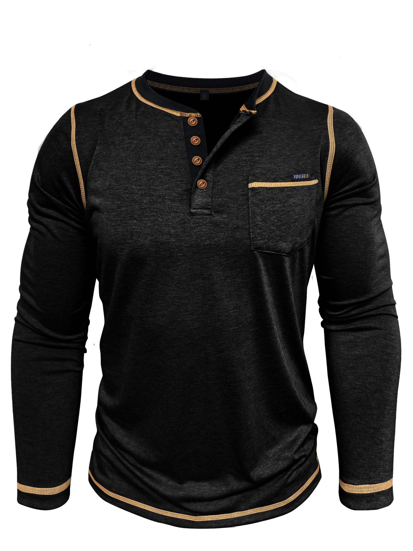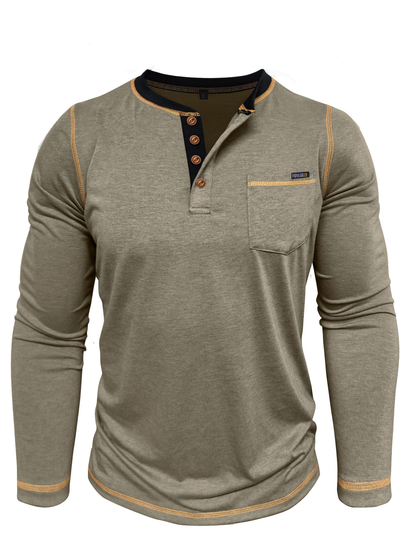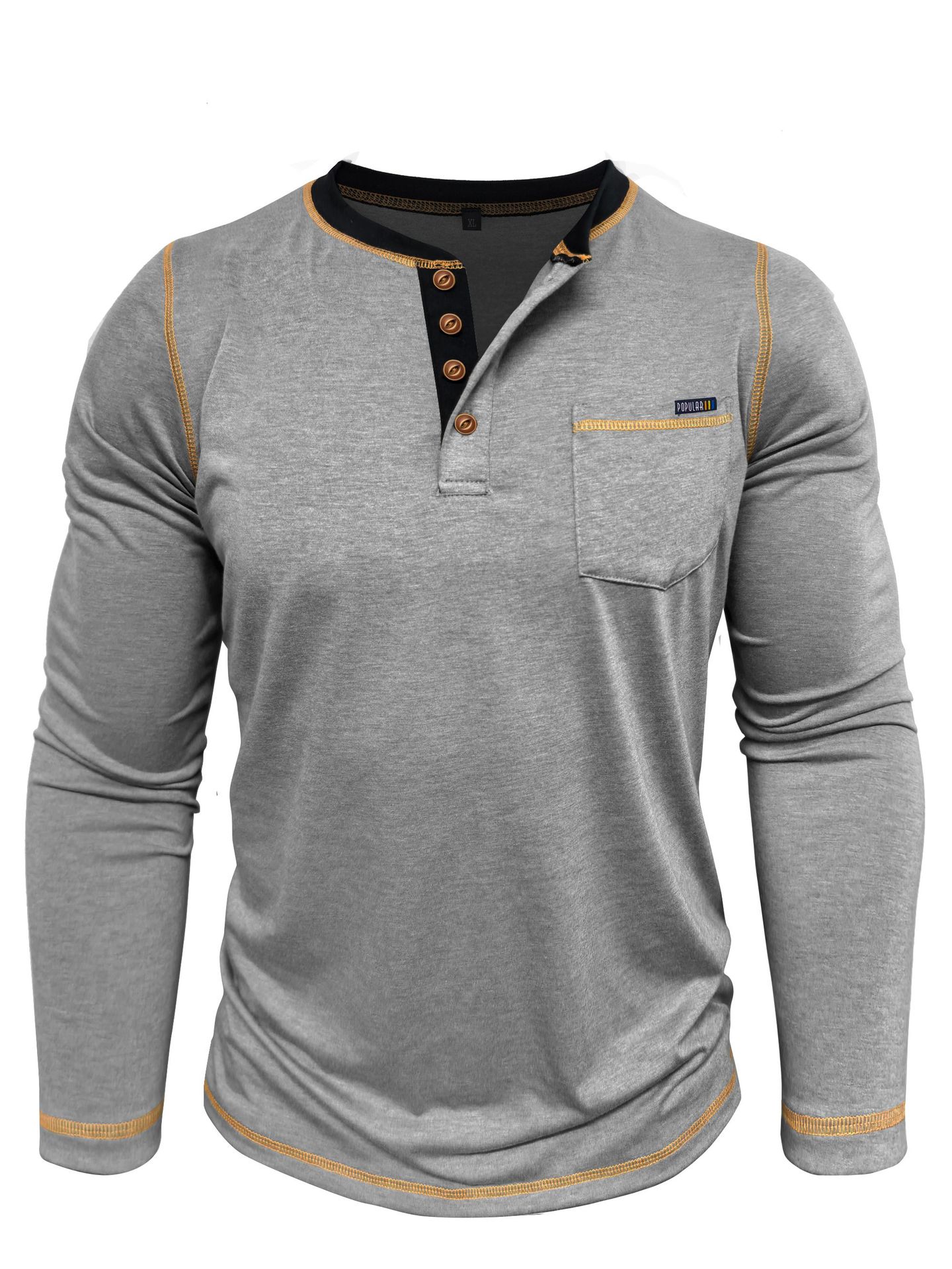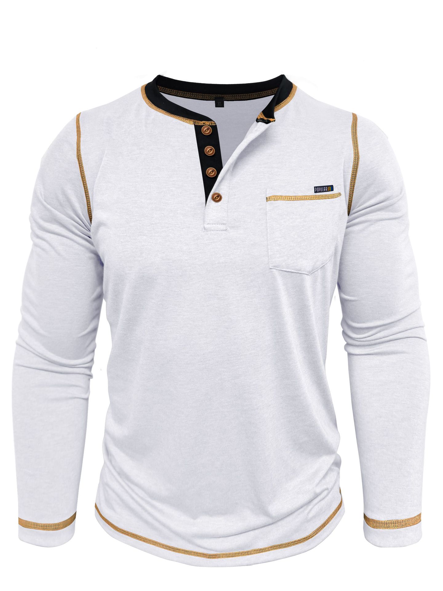 2025 크로스보더 남성 가을 겨울 대형 대외 무역 남성 긴팔 티셔츠 유럽과 미국 남성 헨리 셔츠 4버튼 탑스토어 가기
