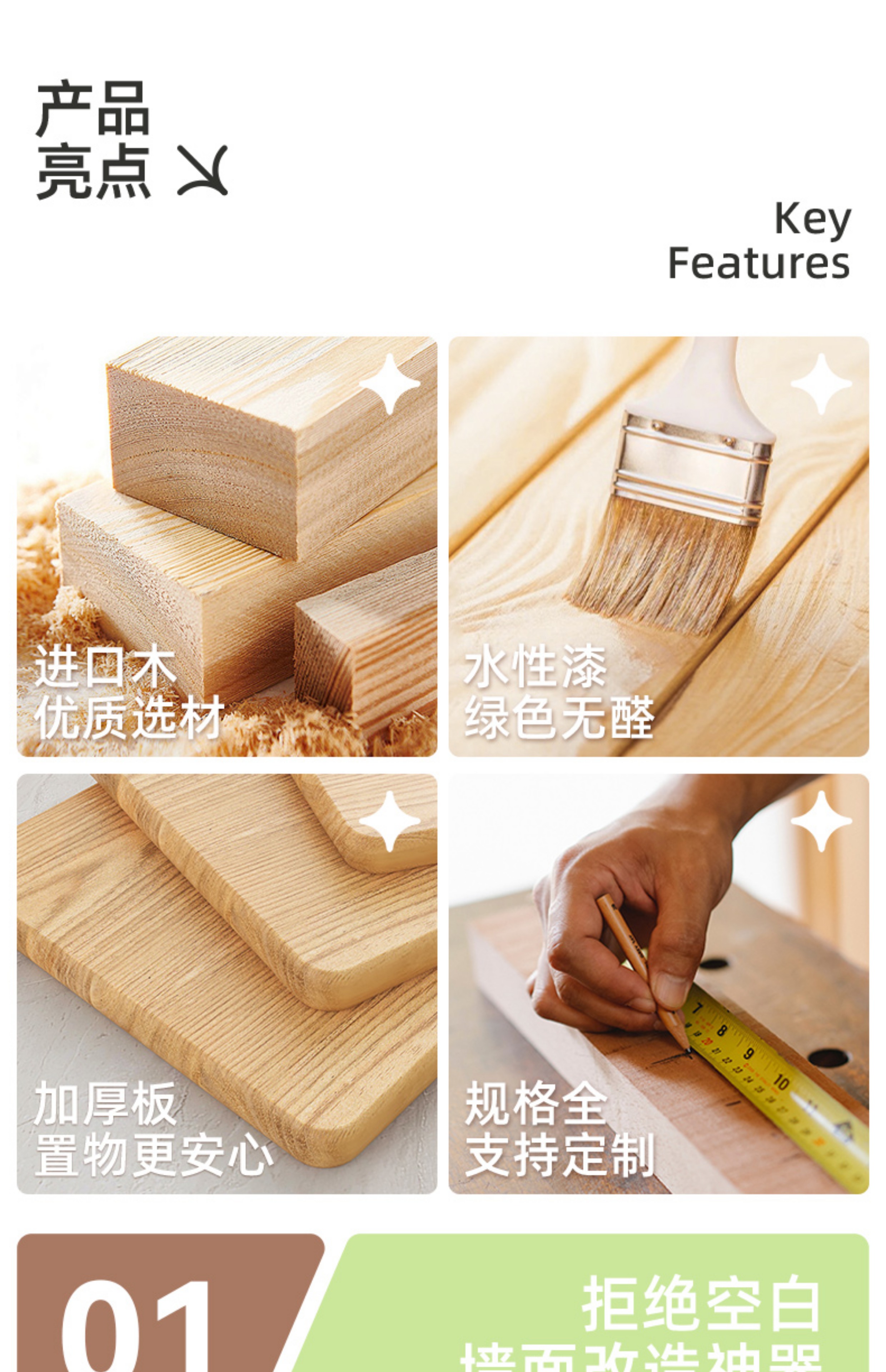 • 24*80CM [콘센트 구멍*원래 나무 색상]