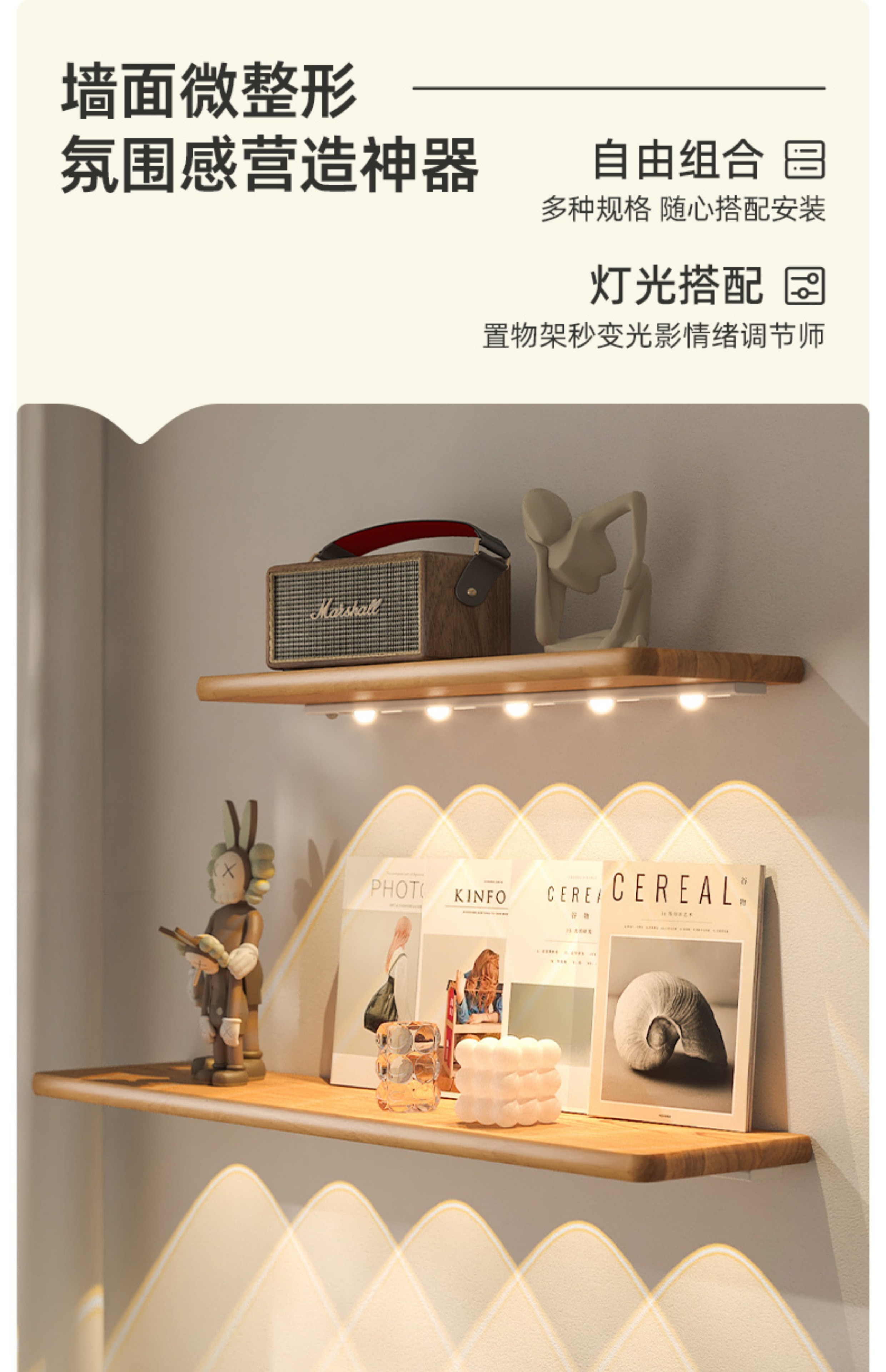 • 20CM 3종 조합 [내장형 라이트 스트립 * 우드 컬러]