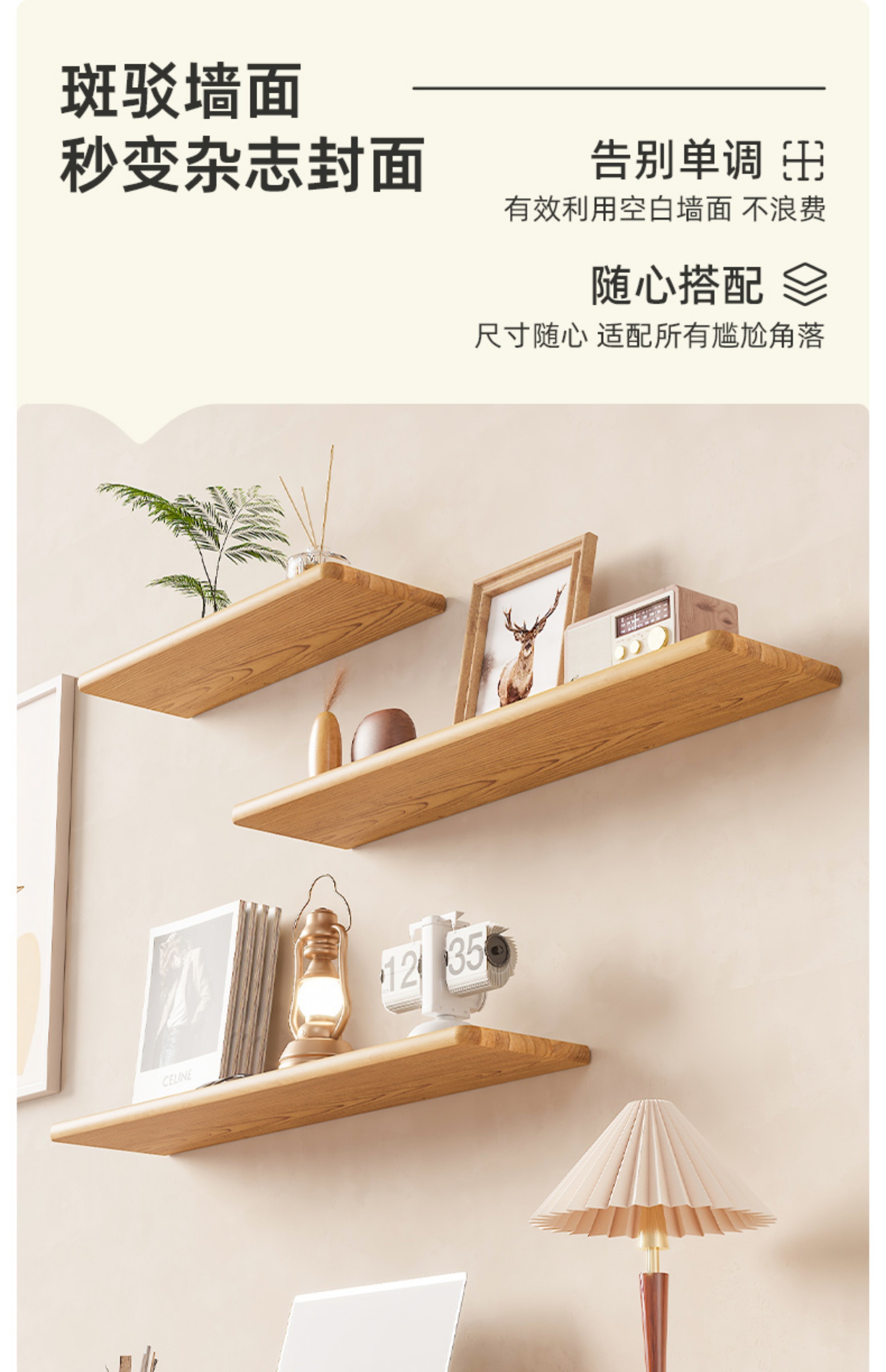 단단한 나무 맞춤형 랙 벽 수납 선반 벽 장식 선반 책장 TV 소파 로그 스타일 선반