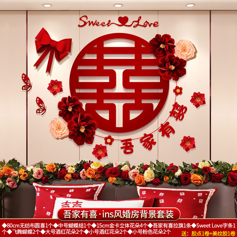 웨딩룸 레이아웃, 침대 옆 배경, 남성용 방, 웨딩 침실 장식, 여성용 새 집 세트, 웨딩 용품