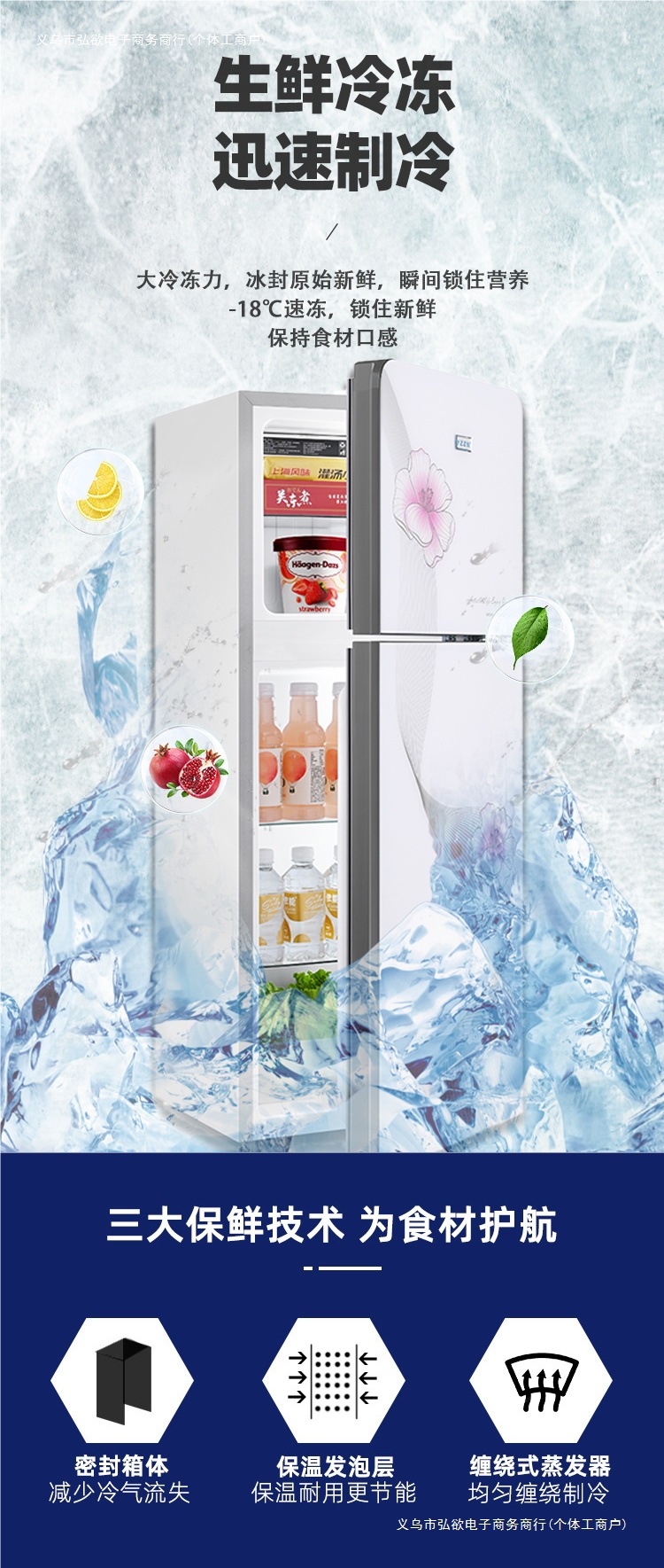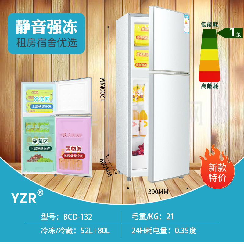 새로운 Yangzi 전기 냉장고 소형 가정용 양문형 기숙사 임대 주택 냉동 및 냉장 에너지 절약스토어 가기