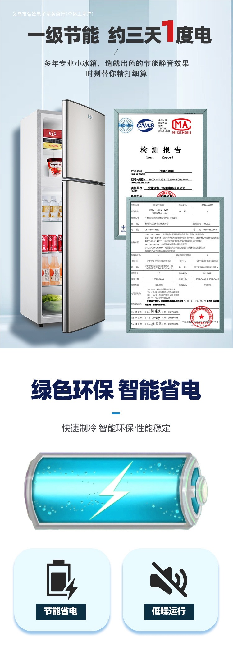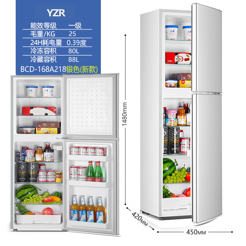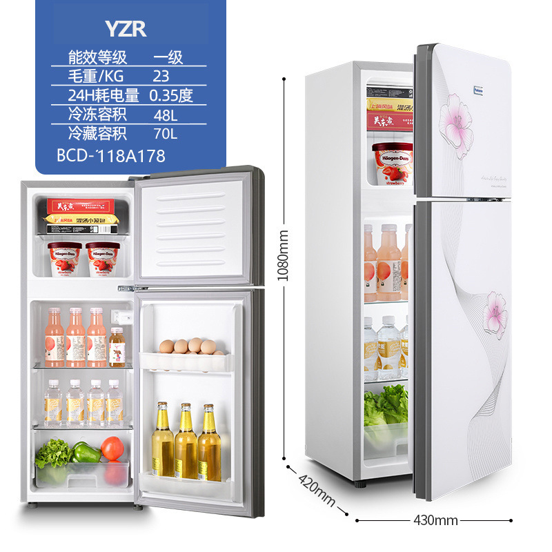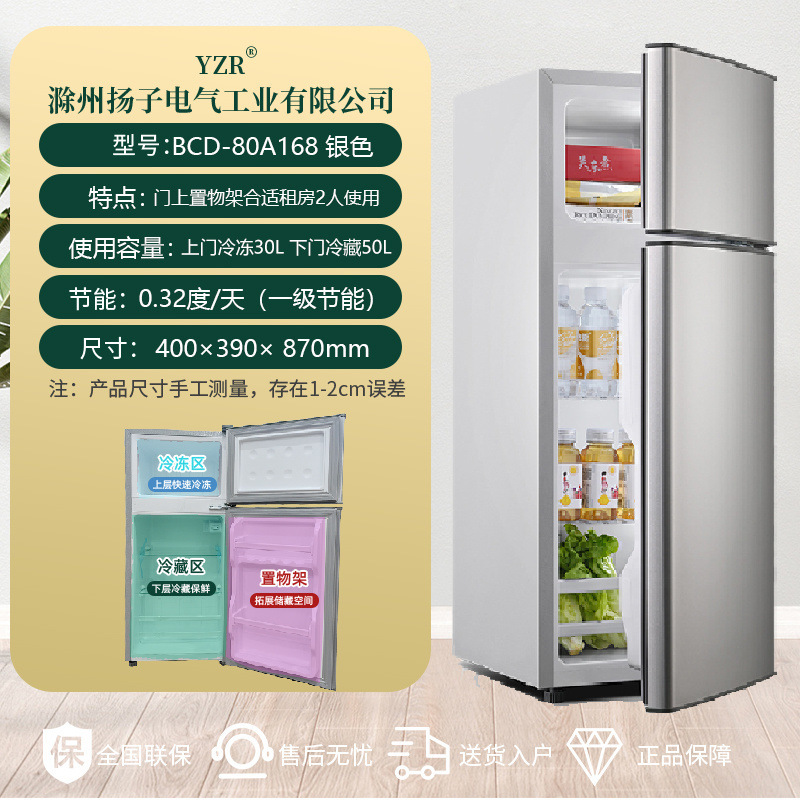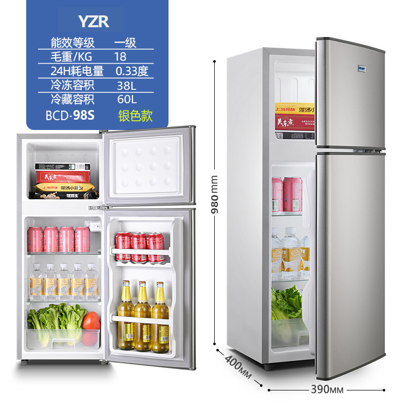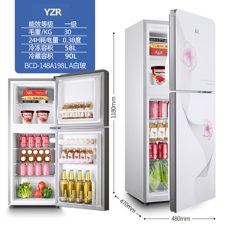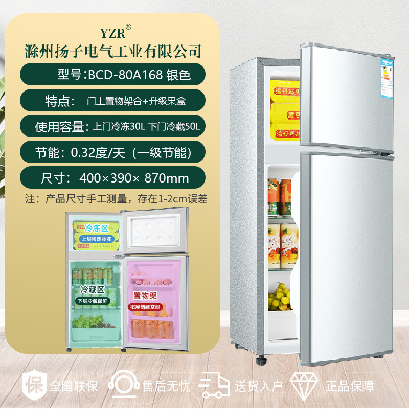새로운 Yangzi 전기 냉장고 소형 가정용 양문형 기숙사 임대 주택 냉동 및 냉장 에너지 절약