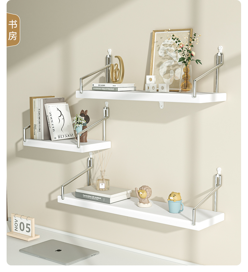 벽에 구멍을 뚫지 않고 설치할 수 있는 선반, 벽걸이형 책장, 일체형 벽걸이형 수납판, 벽걸이형 일자형 보드
