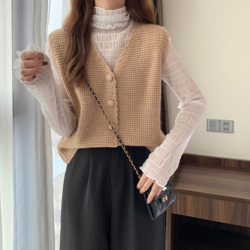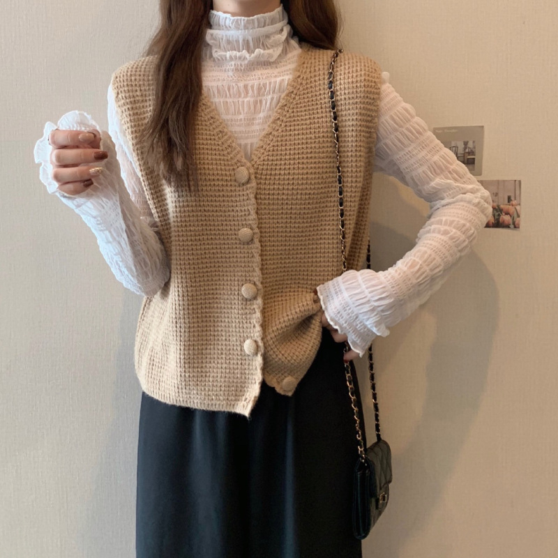 니트 조끼 여성 가을 조끼 겉옷 작은 양복 조끼 조끼 겉옷 2025 새로운 패션 니트 카디건 트렌드