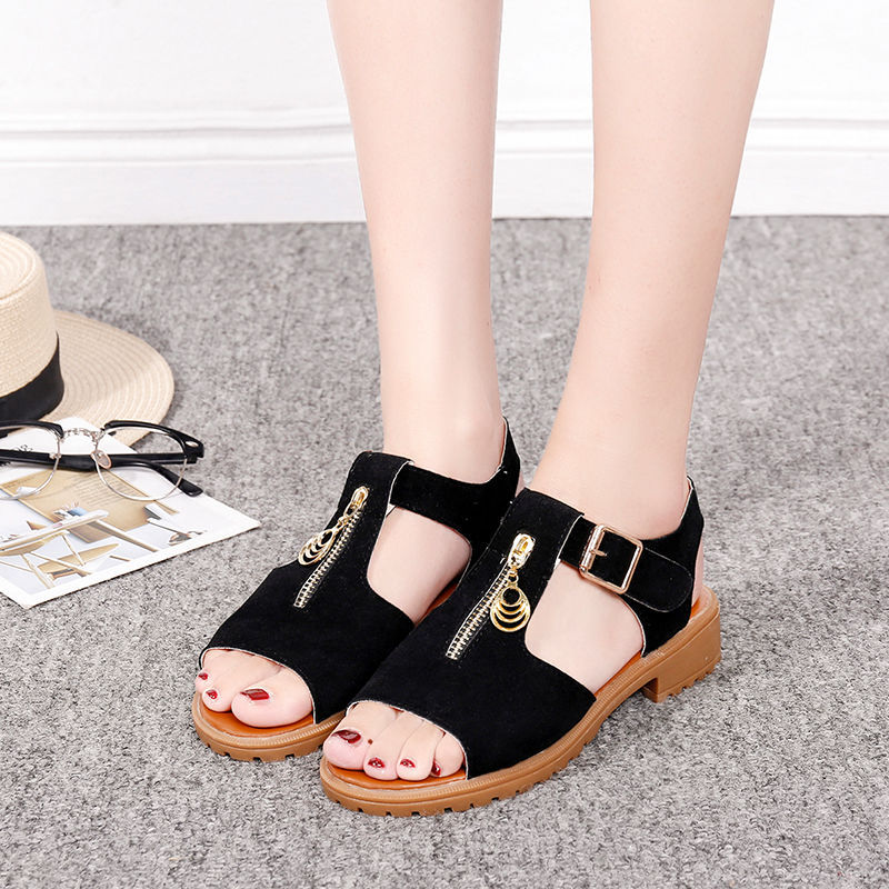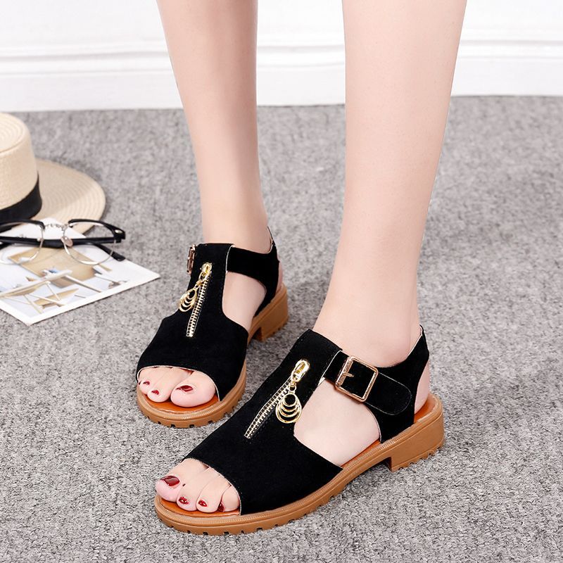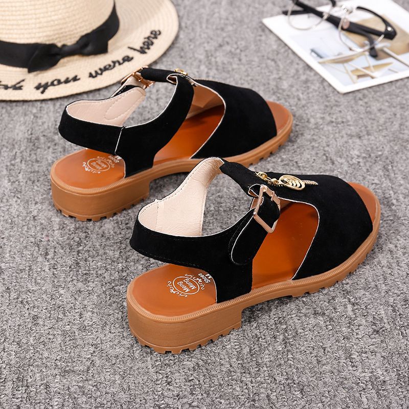 샌들 여성 플랫 2021 신상 여름 원 버튼 플랫 힐 심플 한국어 버전 다용도 캐주얼 학생 임산부 신발스토어 가기
