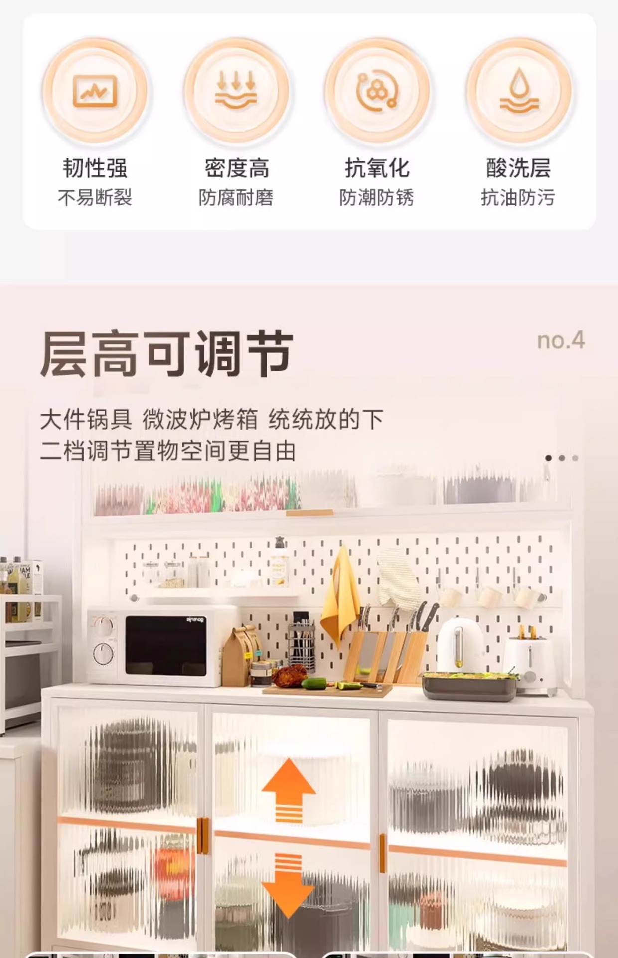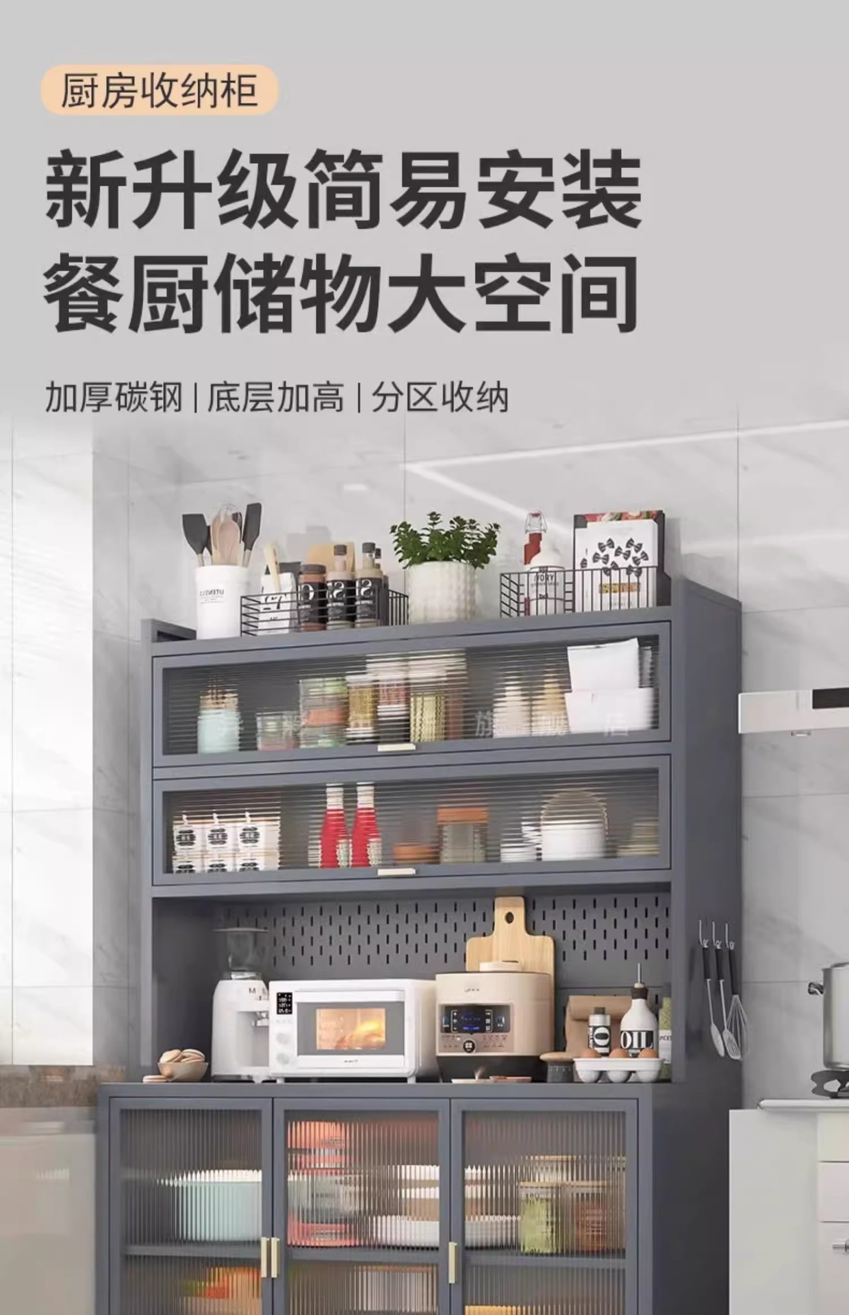 벽에 붙은 주방 선반, 다기능 바닥형 찬장, 전자레인지 선반, 수납 캐비닛, 찬장 수납 캐비닛