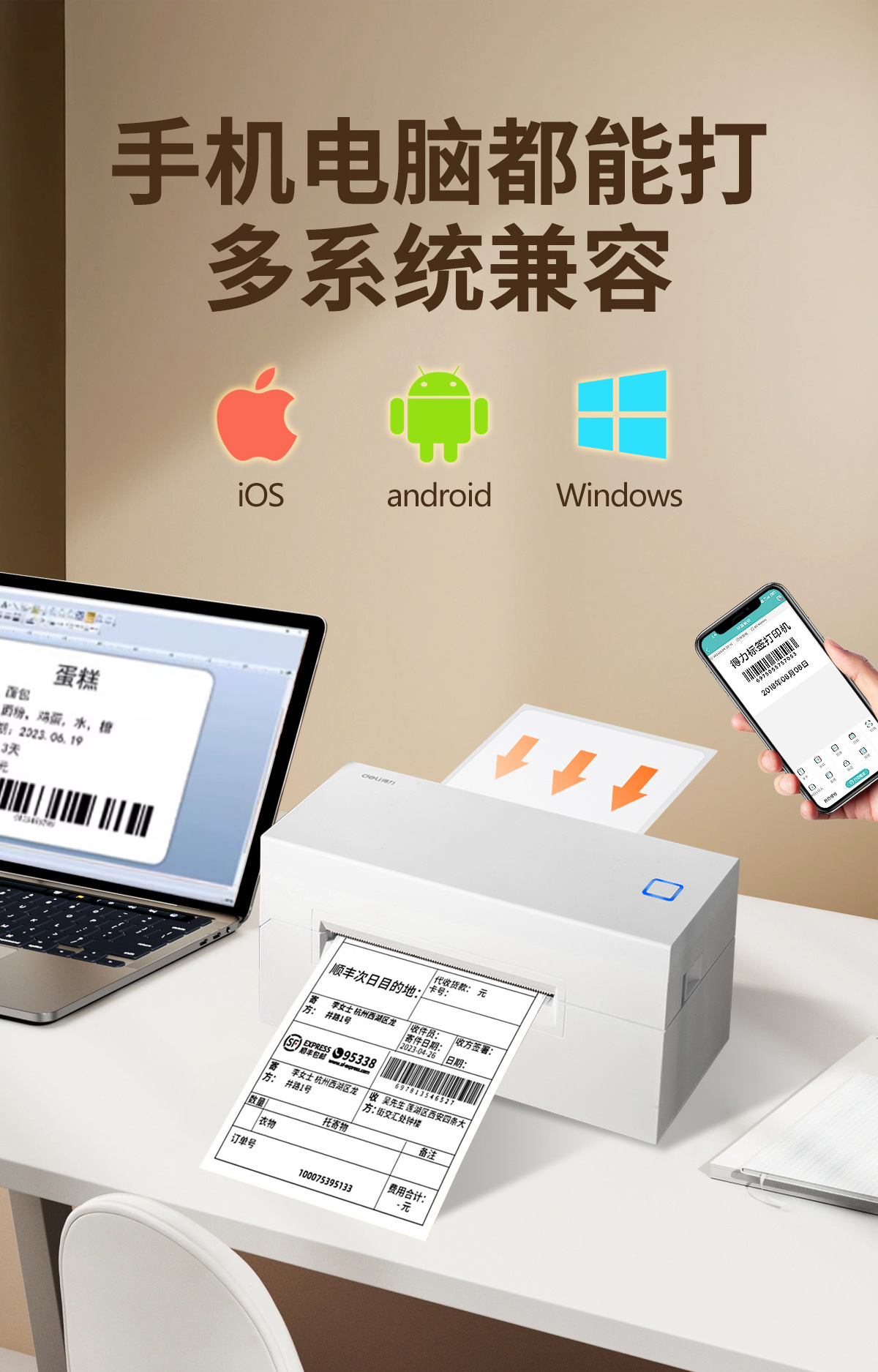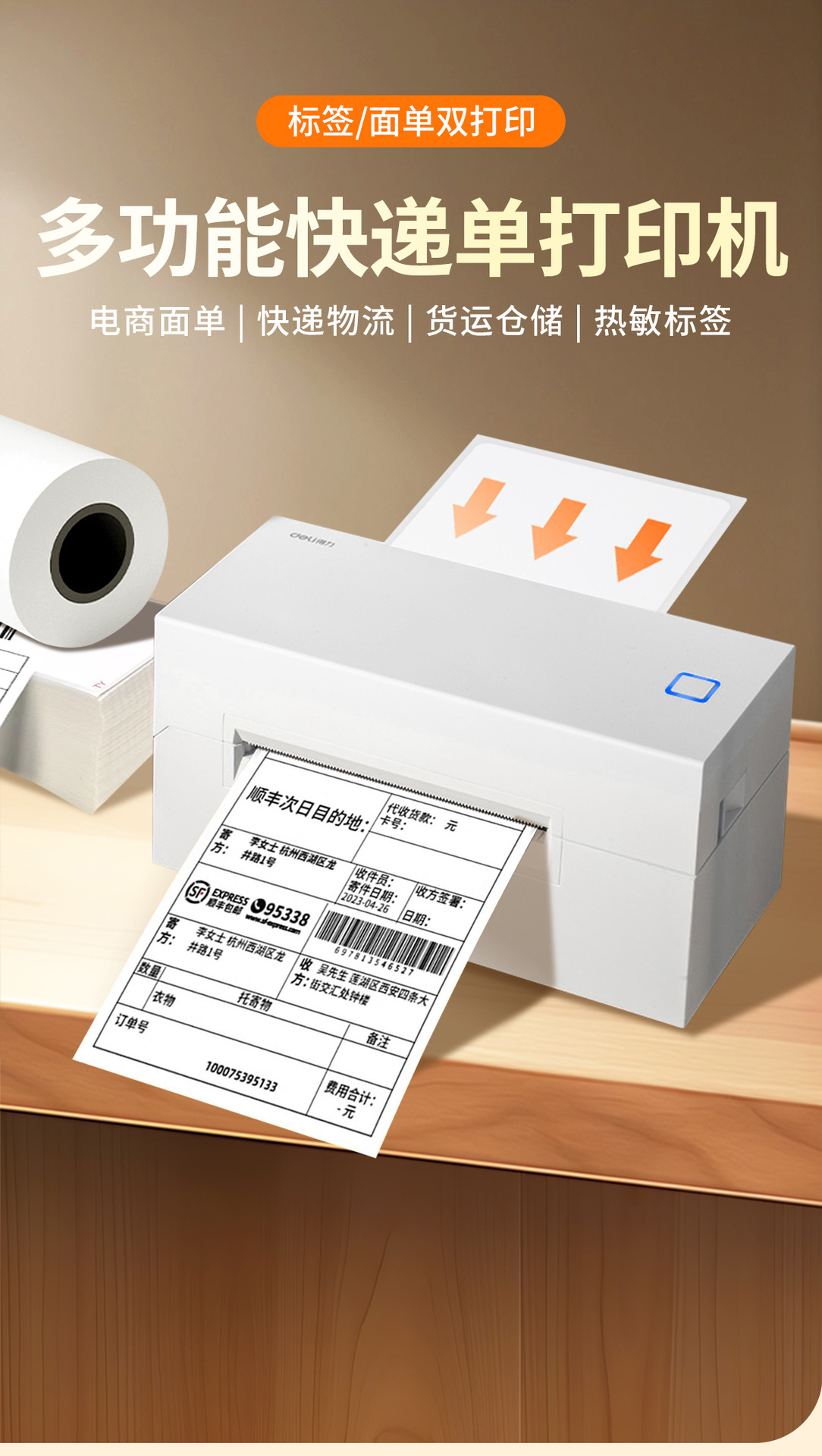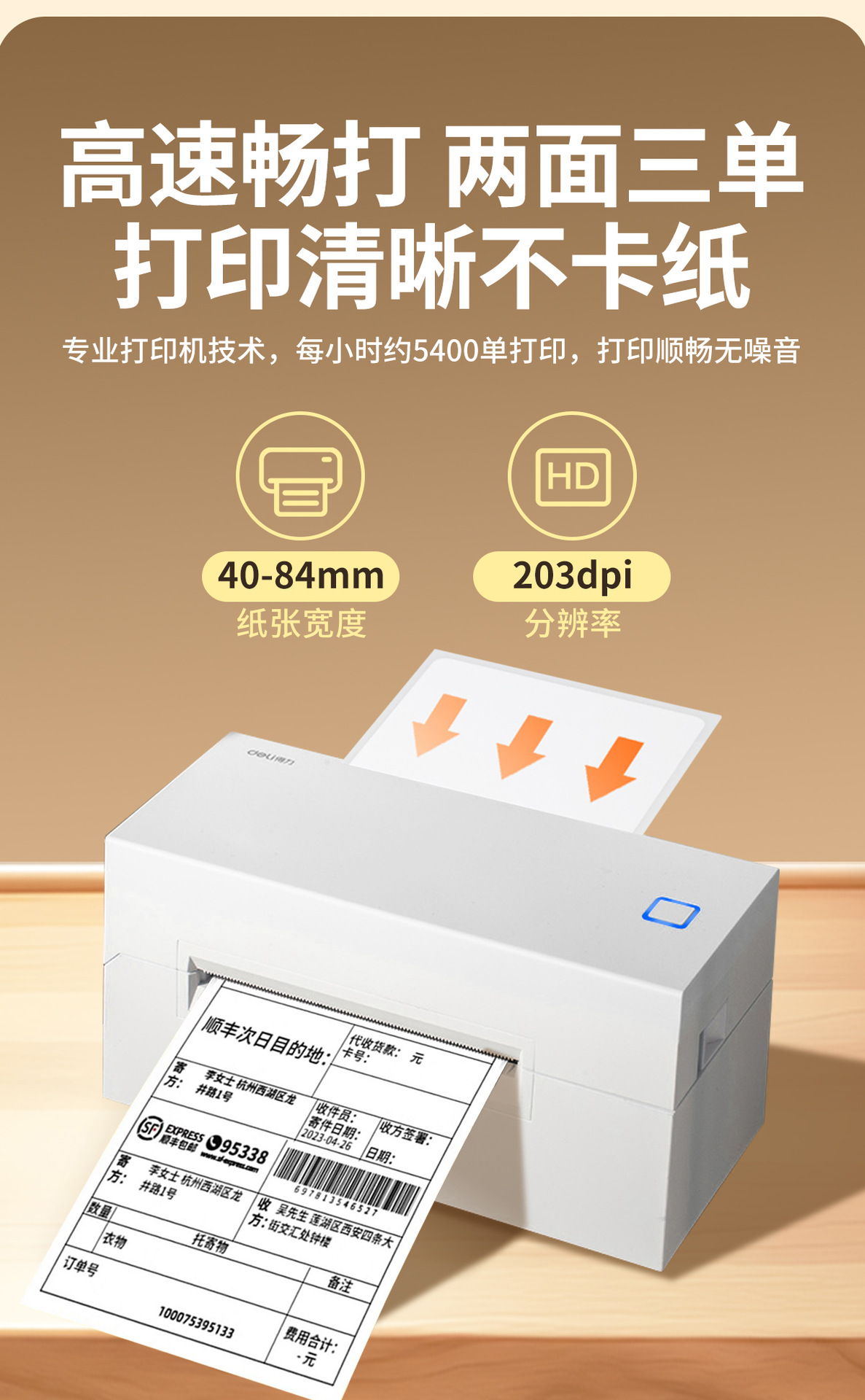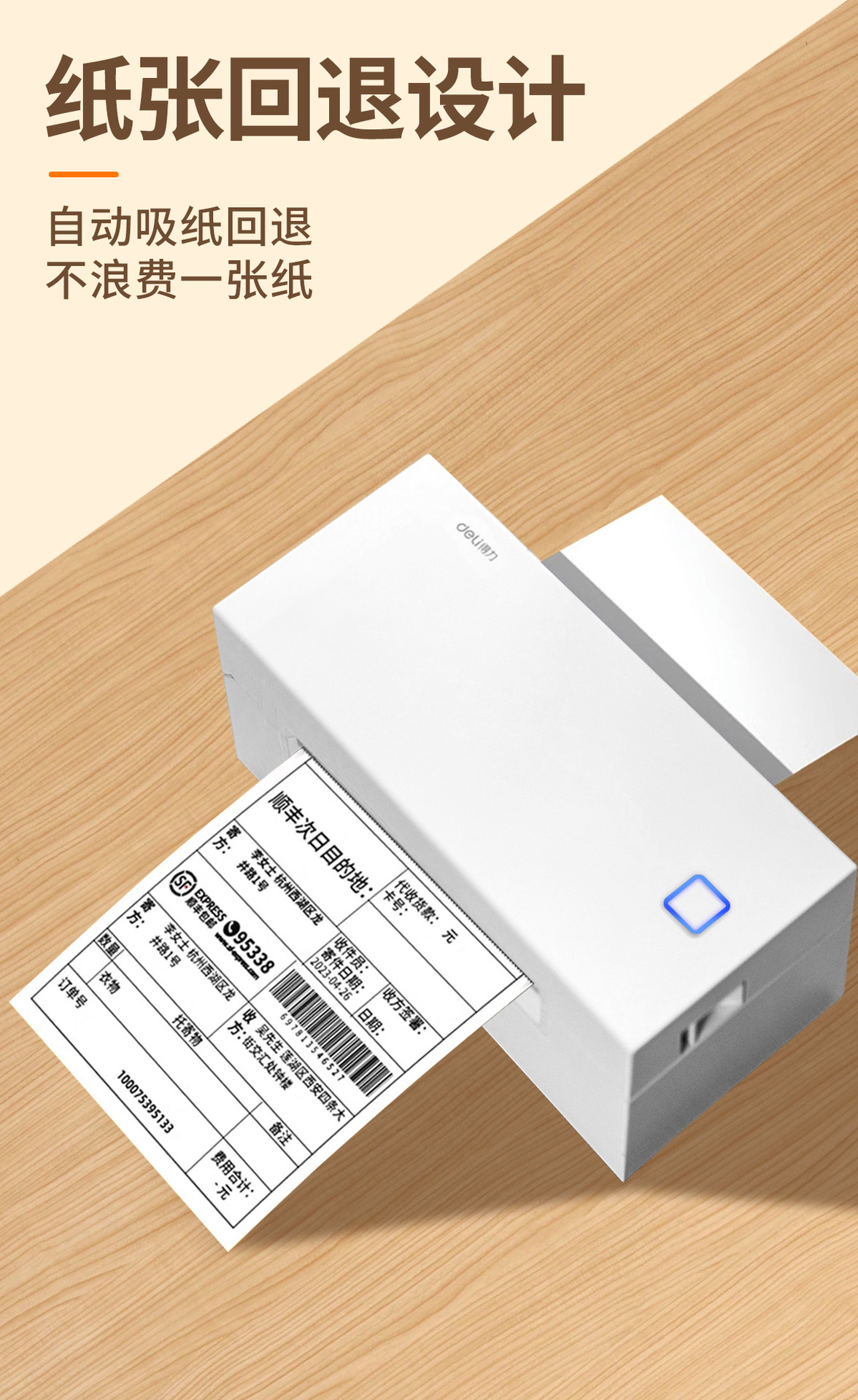 Deli 760DW 익스프레스 주문 프린터 열 라벨 소형 Bluetooth 자체 접착 바코드 전자 상거래 주문 기계스토어 가기