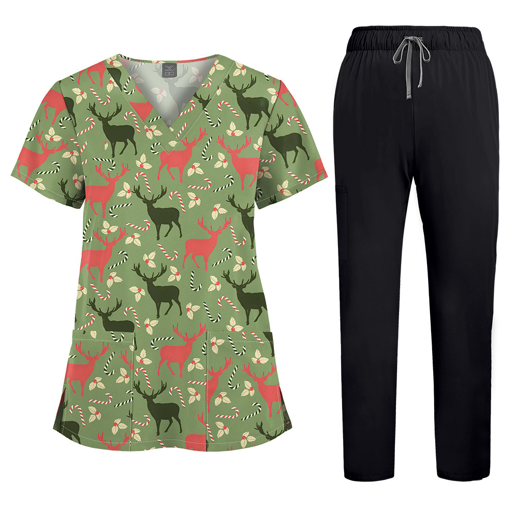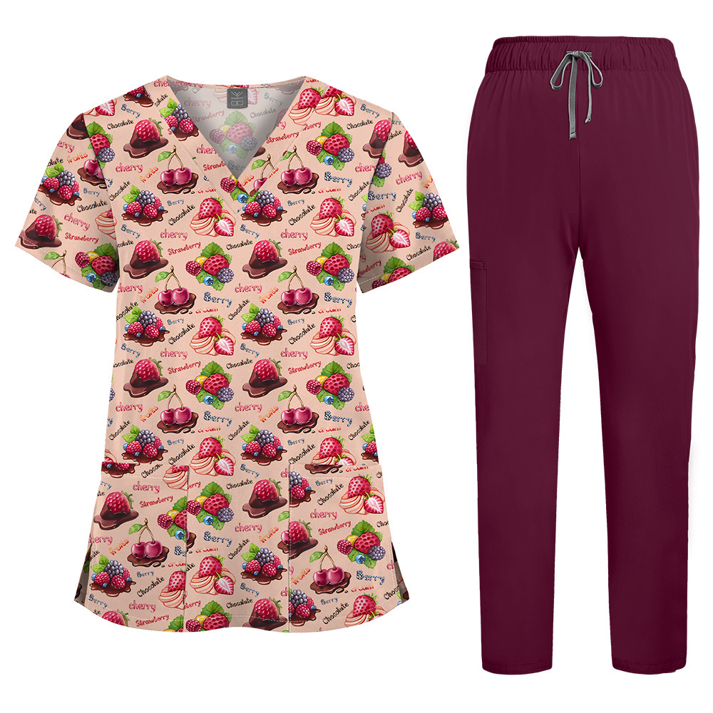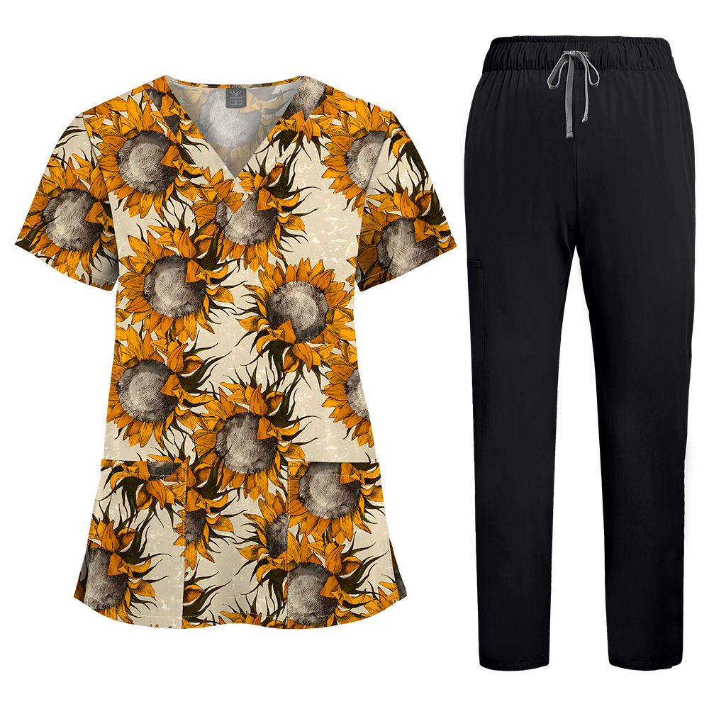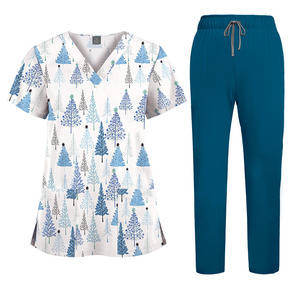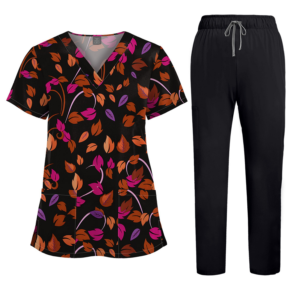 뜨거운 판매 새로운 인쇄 손 씻기 의류 단색 바지 정장 간호사 의류 의사 병원 클리닉 작업복 투피스 세트스토어 가기