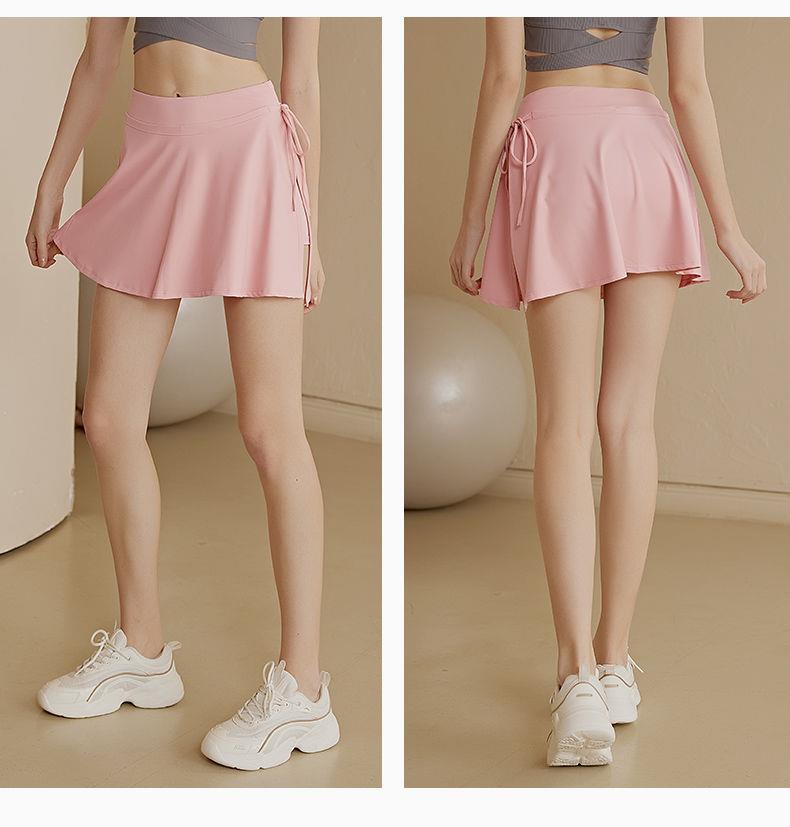미모가 좋은 엉덩이 커버 스포츠 요가 스커트 배드민턴 테니스 스커트 팬츠 속건 스커트 사이드 슬릿 스트랩 스커트