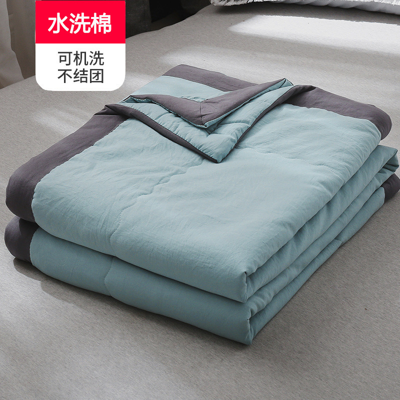 워시 코튼 에어컨 이불 여름 시원한 이불 더블 여름 얇은 이불 어린이 싱글 학생 기숙사 여름 이불 기계 세탁 가능