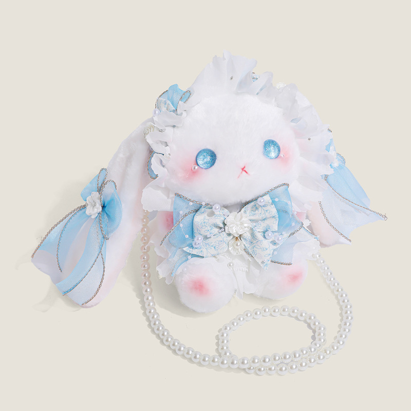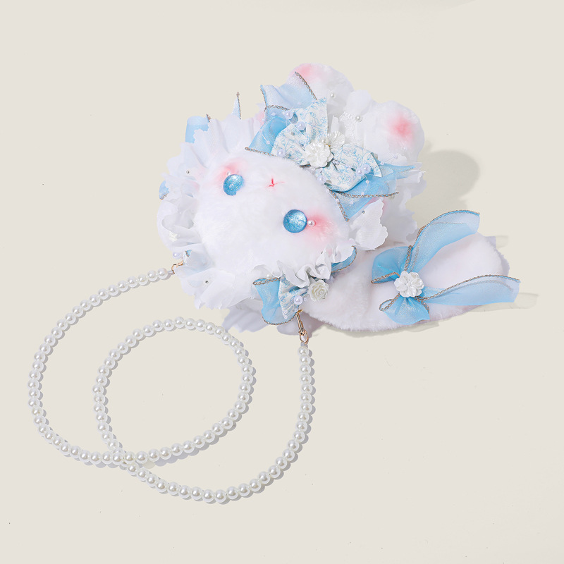 새로운 모리 스타일 ins 고급스러운 만화 로리타 토끼 인형 크로스 바디 백 소녀 진주 체인 숄더 백