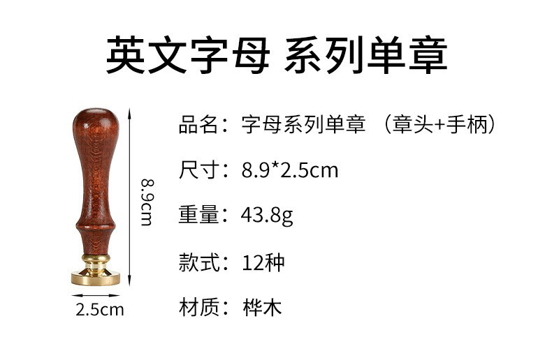 叶子字母激光手柄单章 火漆印章 26个英文字母章头+榉木把柄 套装