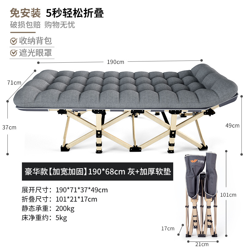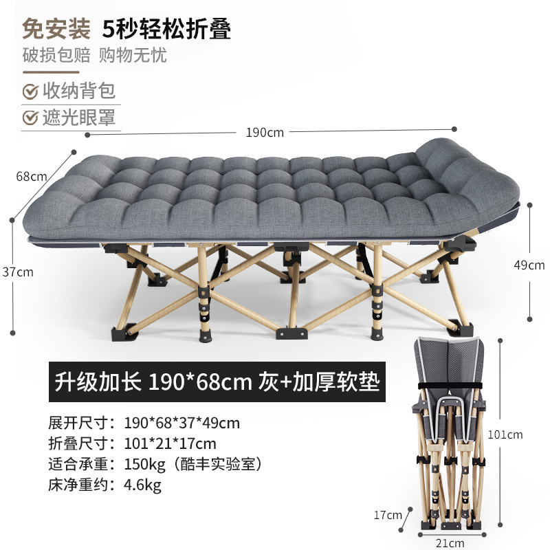 리클라이너 중고 경량 등받이 간편 휴대용 싱글 접이식 침대 사무실 점심시간용 소형 침대 캠프 동반자
