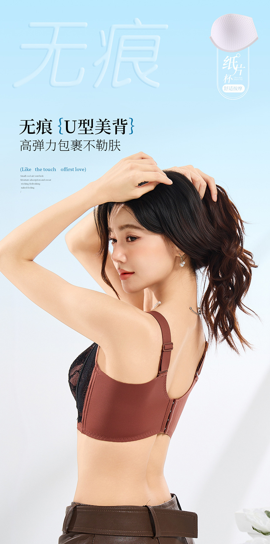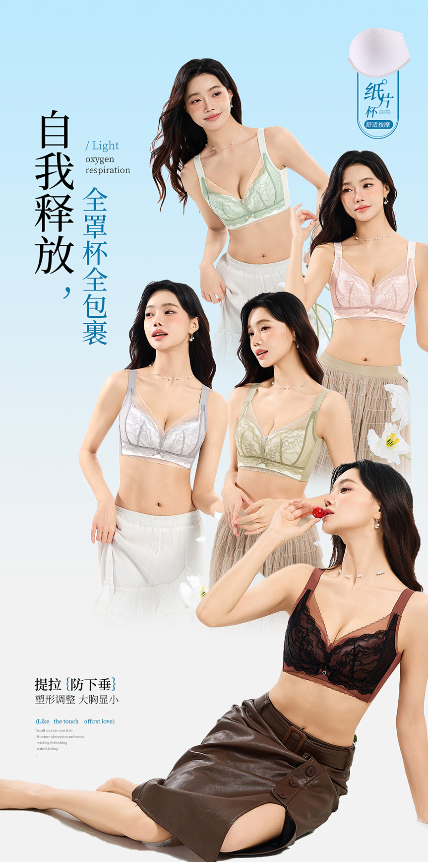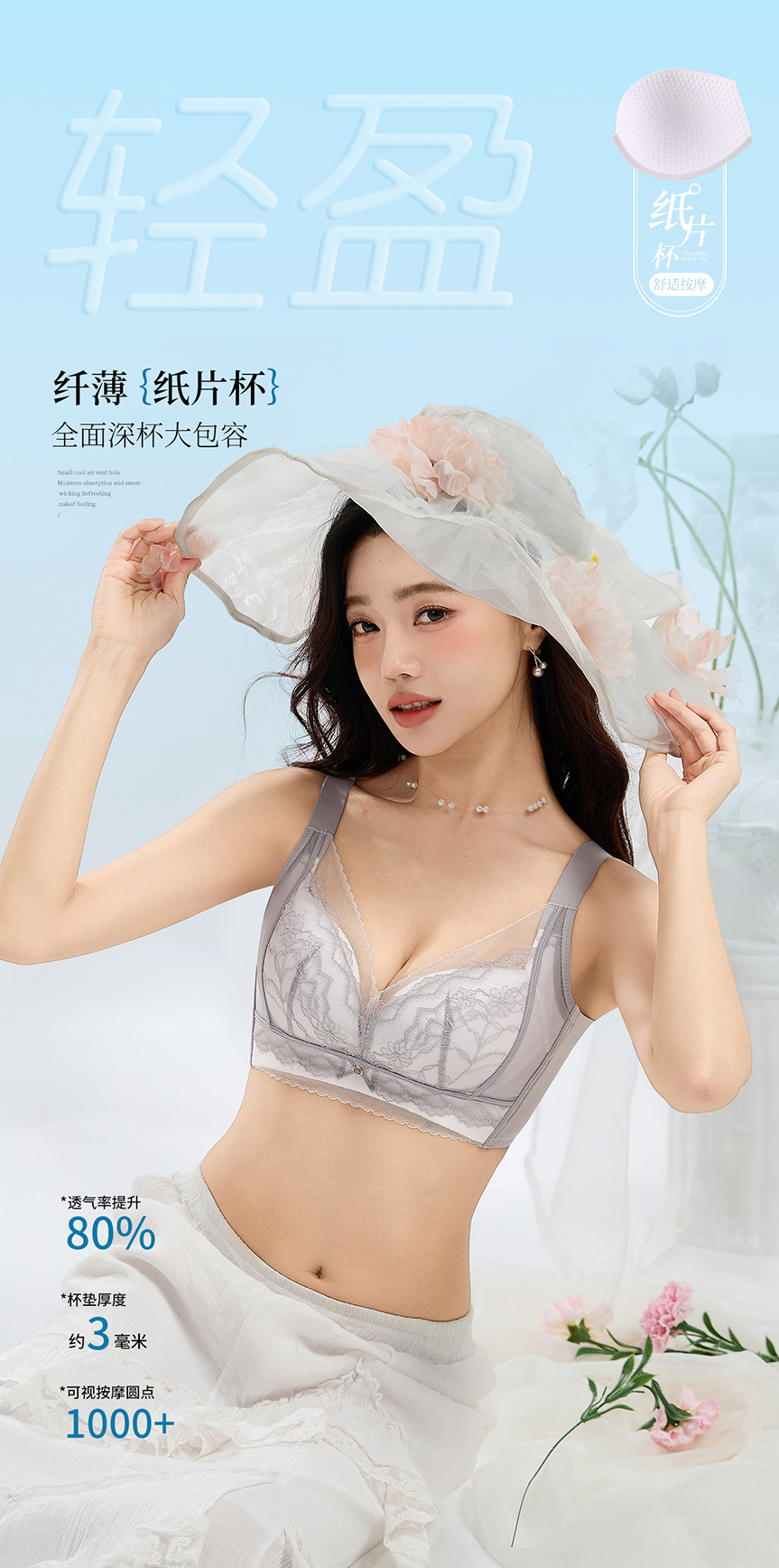 여성용 새로운 스타일의 얇은 컵 대형 속옷, 와이어 없음, 통기성, 조절 가능, 유방 수축 및 처짐 방지 브라