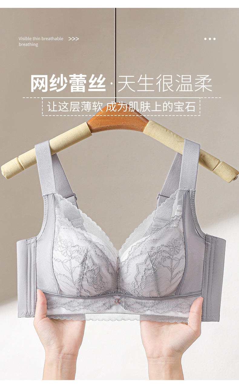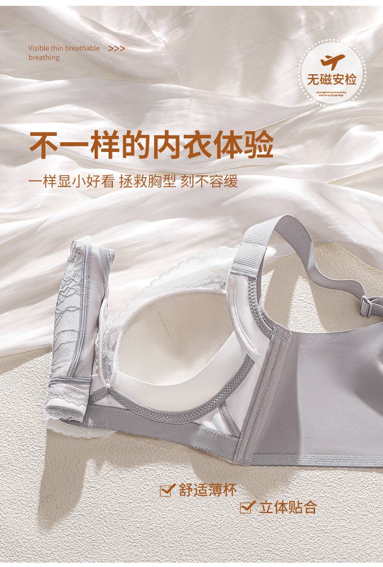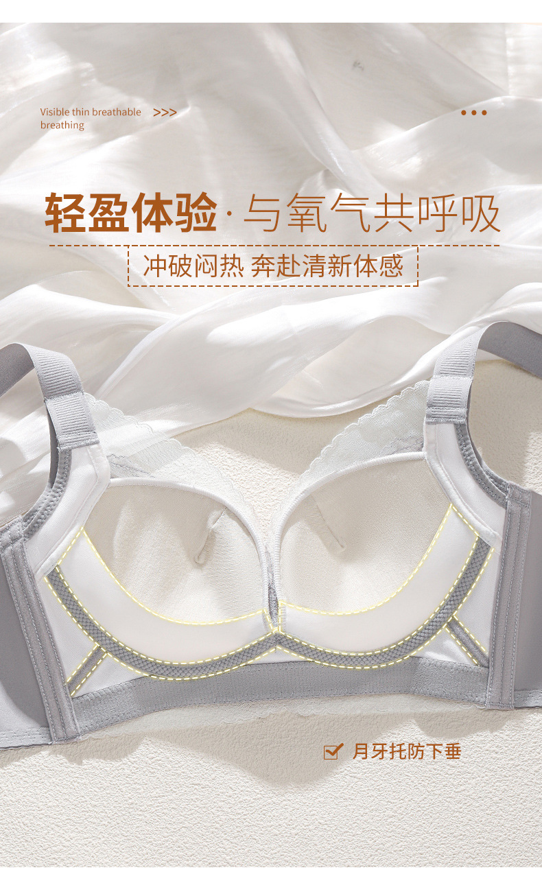 여성용 새로운 스타일의 얇은 컵 대형 속옷, 와이어 없음, 통기성, 조절 가능, 유방 수축 및 처짐 방지 브라스토어 가기