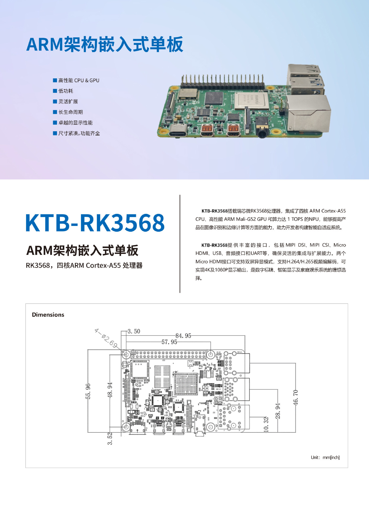 Kangtai KTB 산업용 마더보드 ARM 아키텍처 임베디드 단일 보드 컴퓨터 마더보드 RK3568 쿼드 코어 프로세서