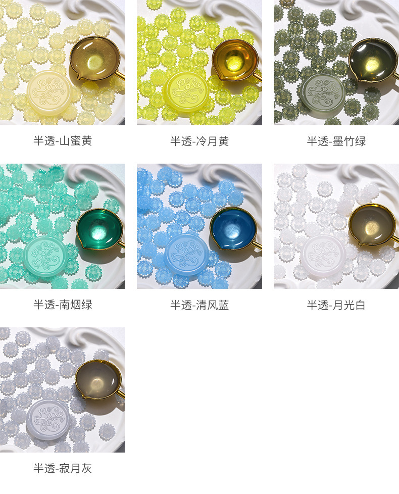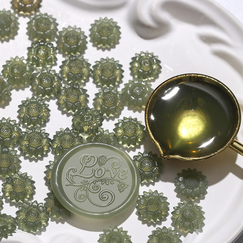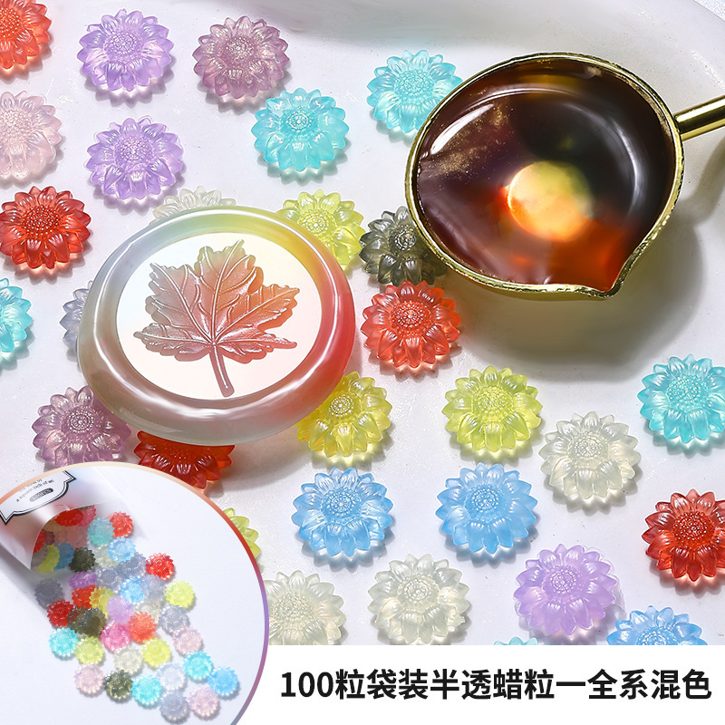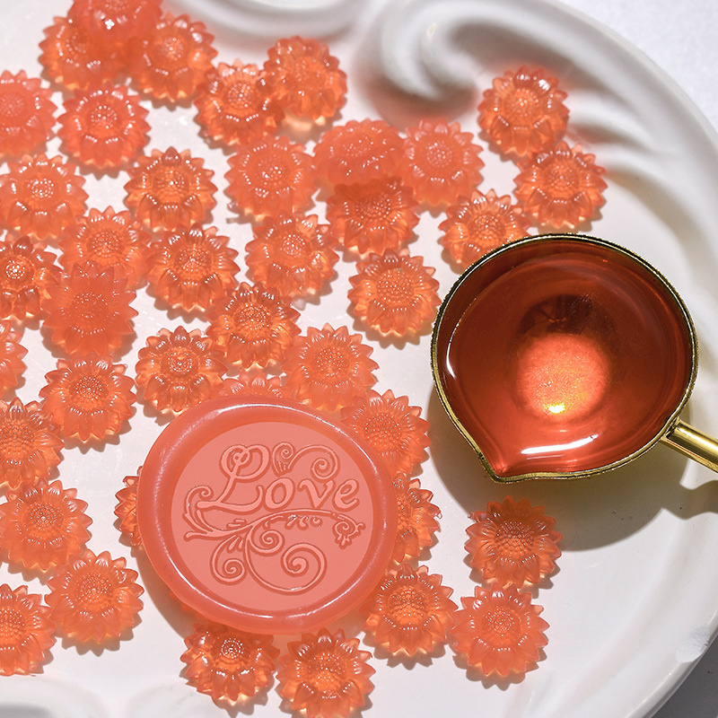 新品发售 半透火漆蜡粒 向日葵半透明火漆印章全套封口腊粒批发