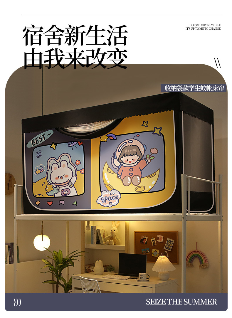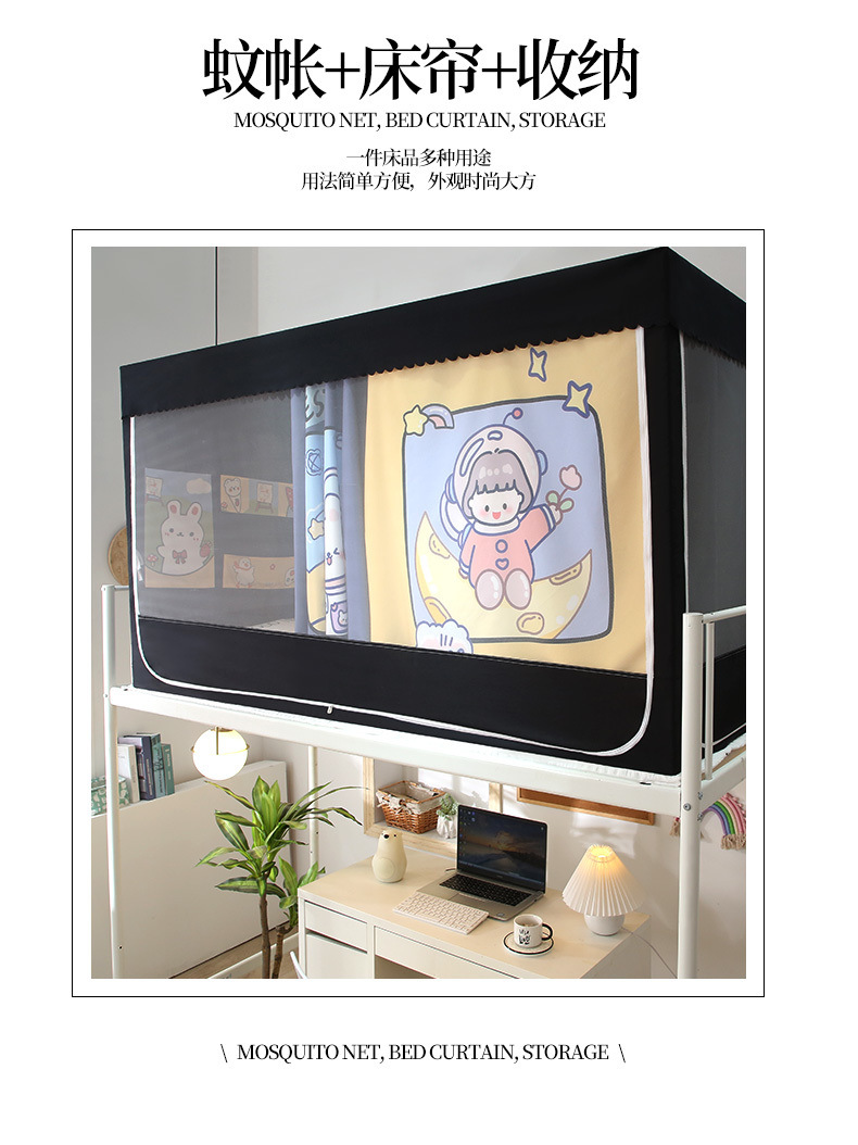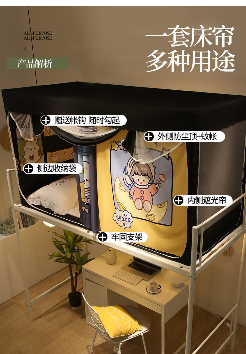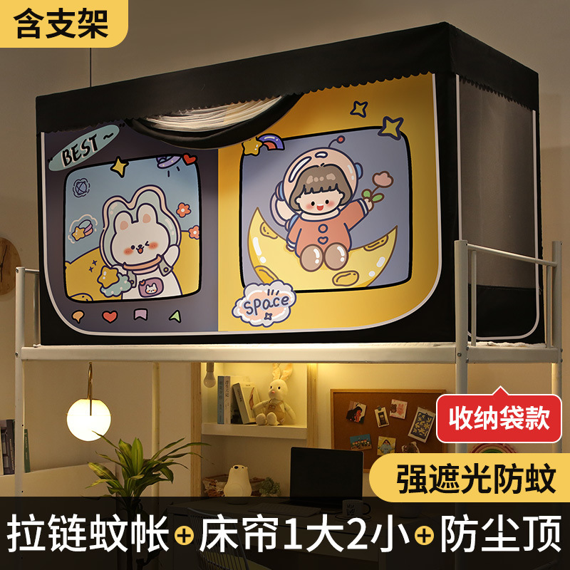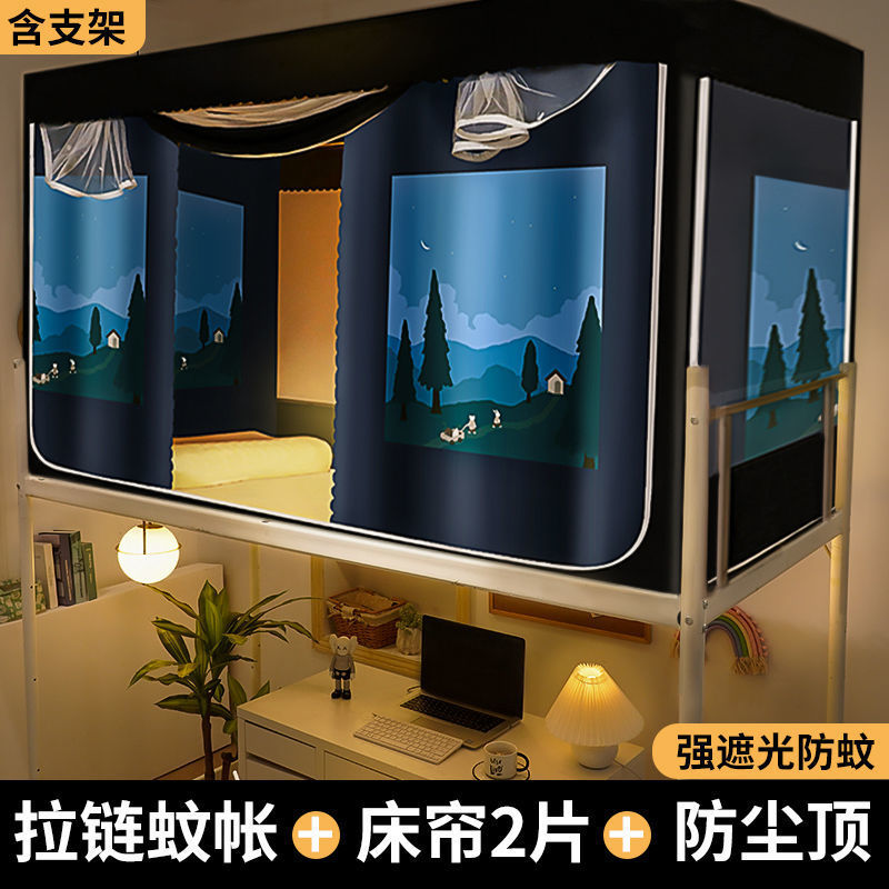 완전 밀폐형 대학 기숙사 침대 커튼 모기장 일체형 기숙사 싱글 하단 침대 상단 커튼 커튼(스탠드 포함)스토어 가기