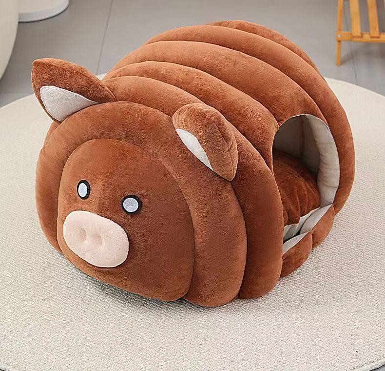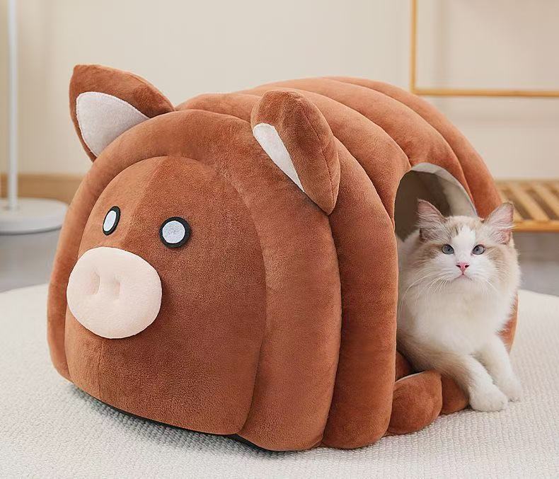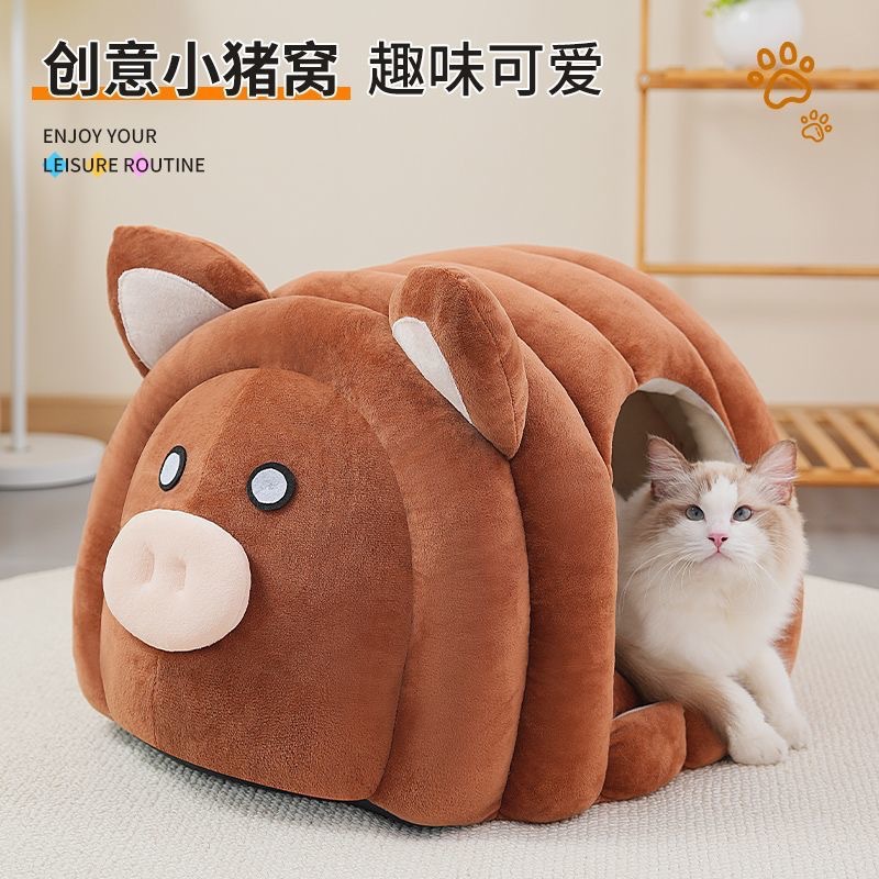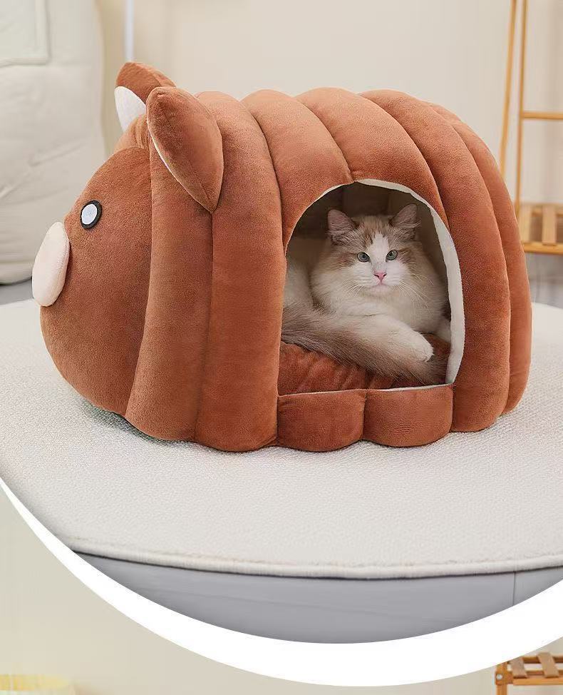 고양이 개집, 겨울 따뜻하고 벨벳으로 두꺼워진 테디 수면 집, 안전한 느낌을 주는 고양이 완전 밀폐형 수면 매트