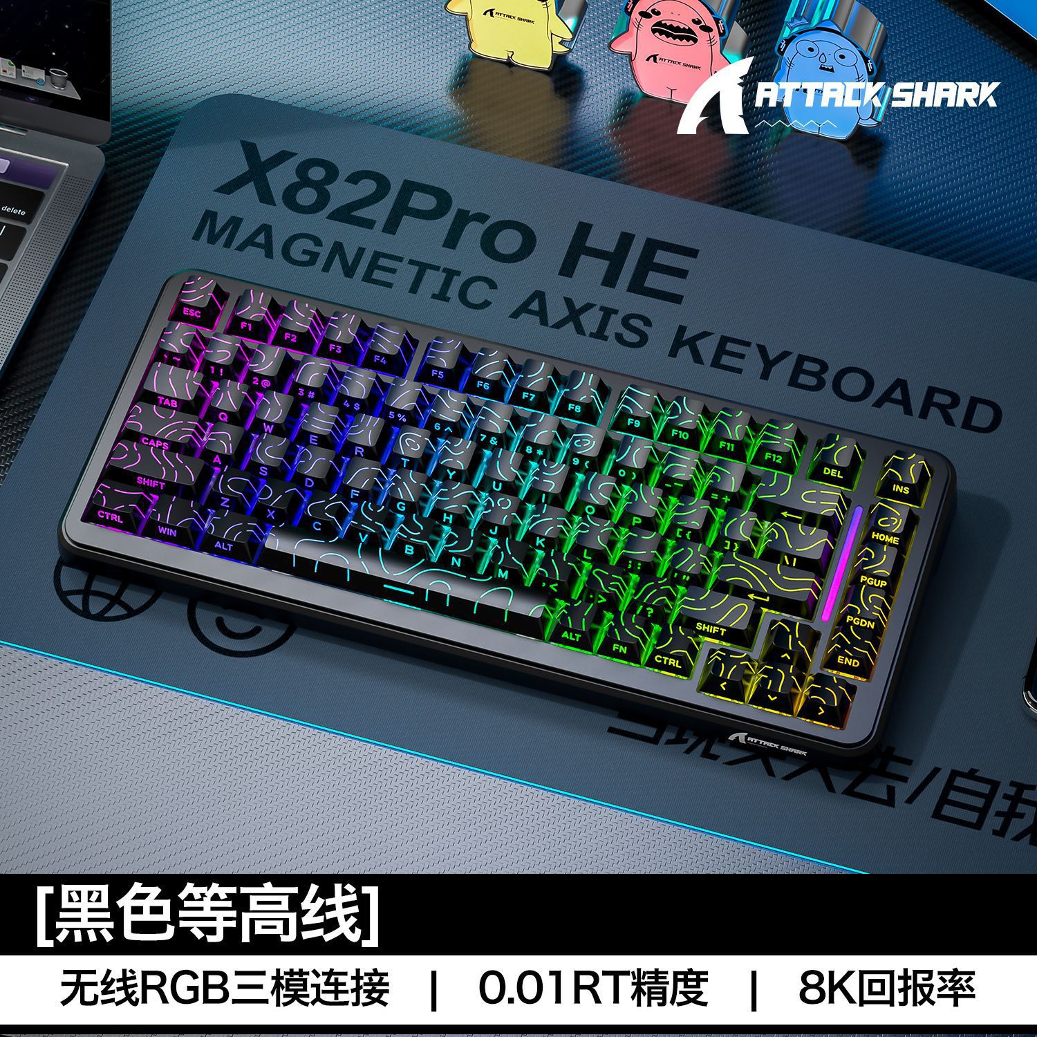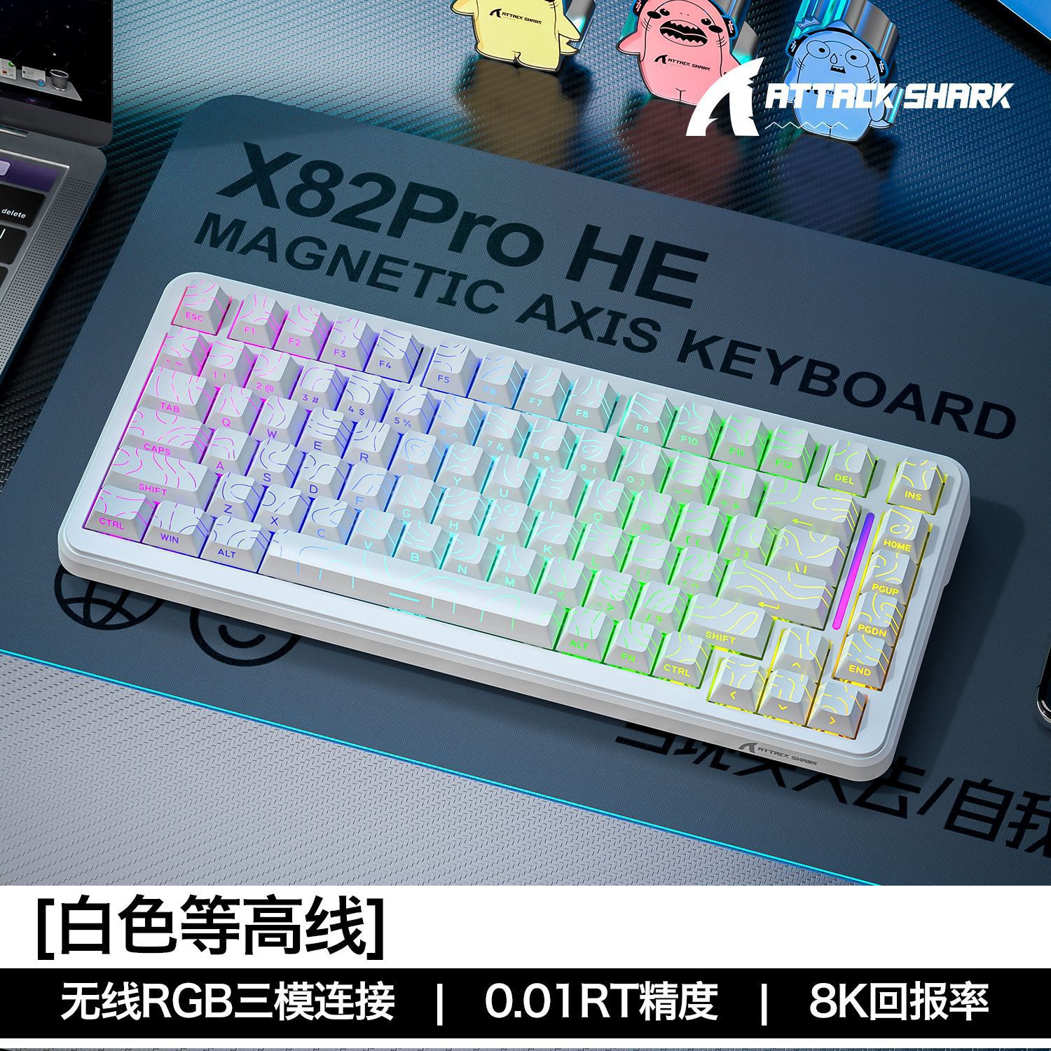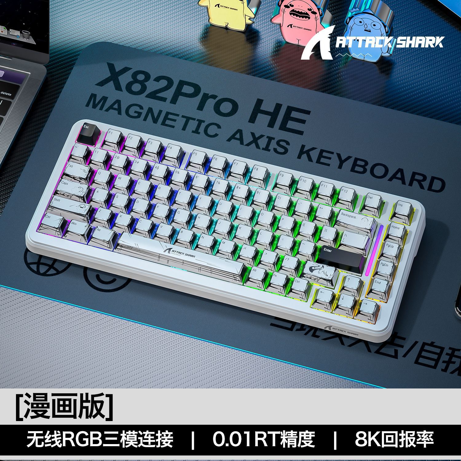 攻击鲨X82PROHE三模RGB无线磁轴机械键盘