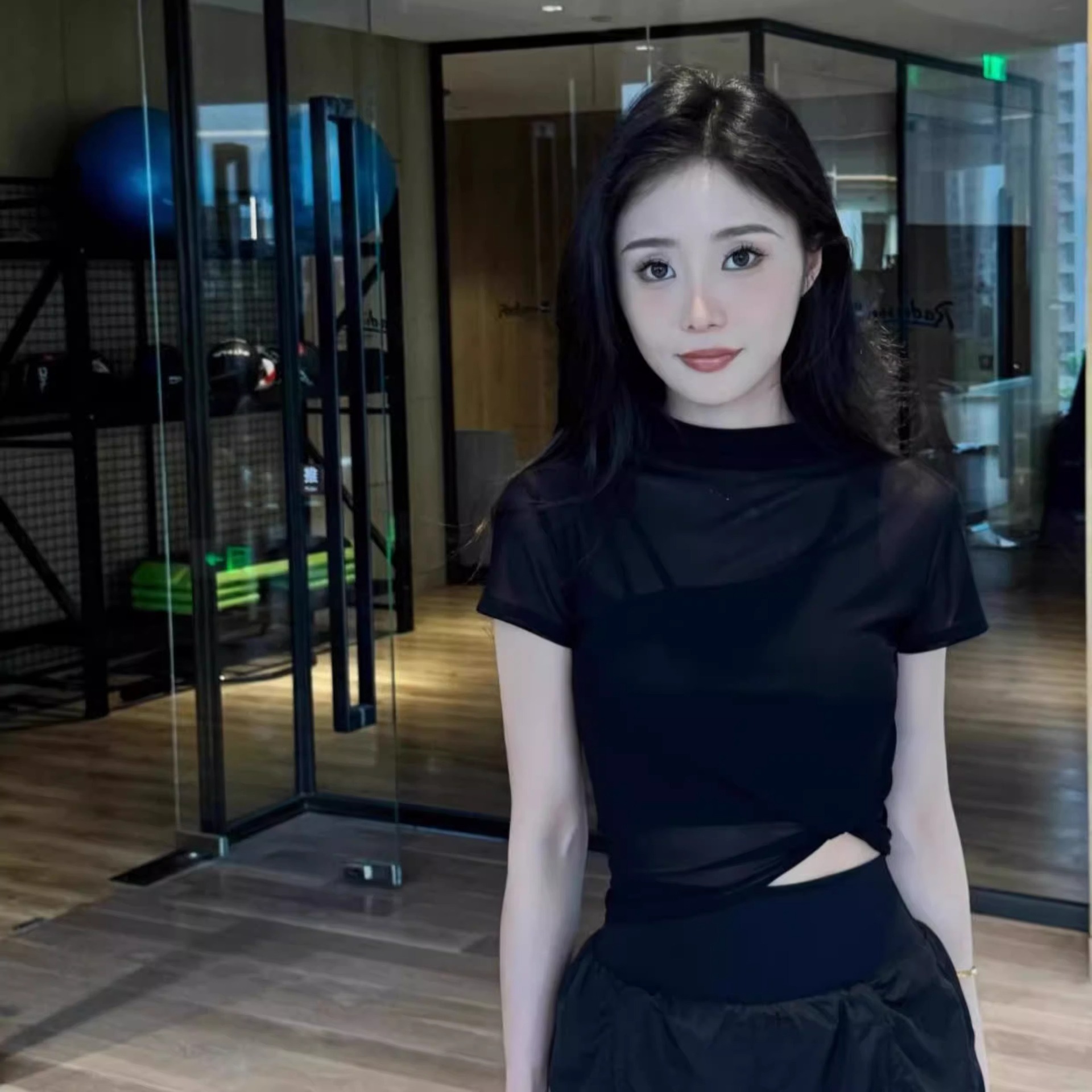 여성을위한 요가 옷 새로운 2025 여름 통기성 요가 피트니스는 메쉬 패션 반팔 여성 도매와 함께 착용 가능