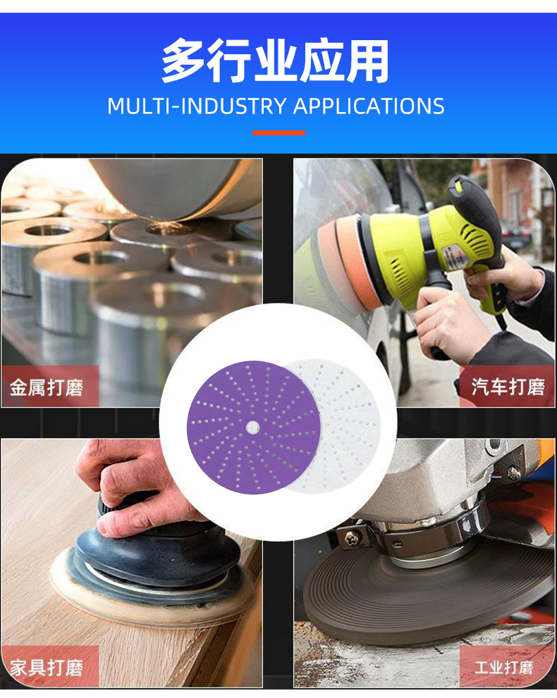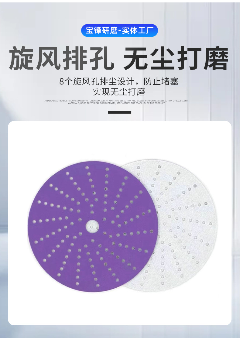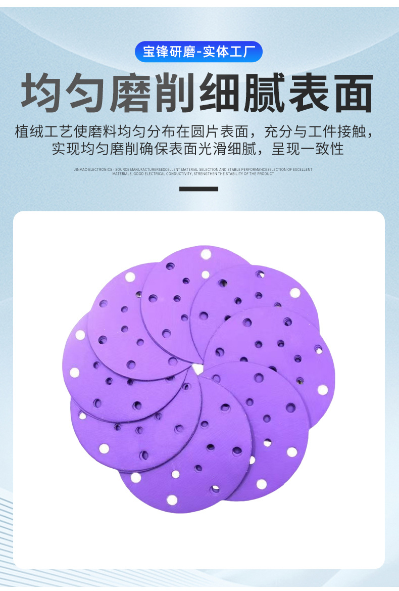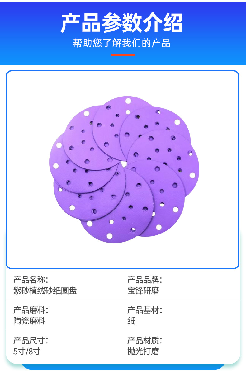 제조 업체 도매 보라색 모래 디스크 플로킹 사포 5 인치 8 홀 125mm 보라색 사포 페인트 연마 세라믹 연마재스토어 가기