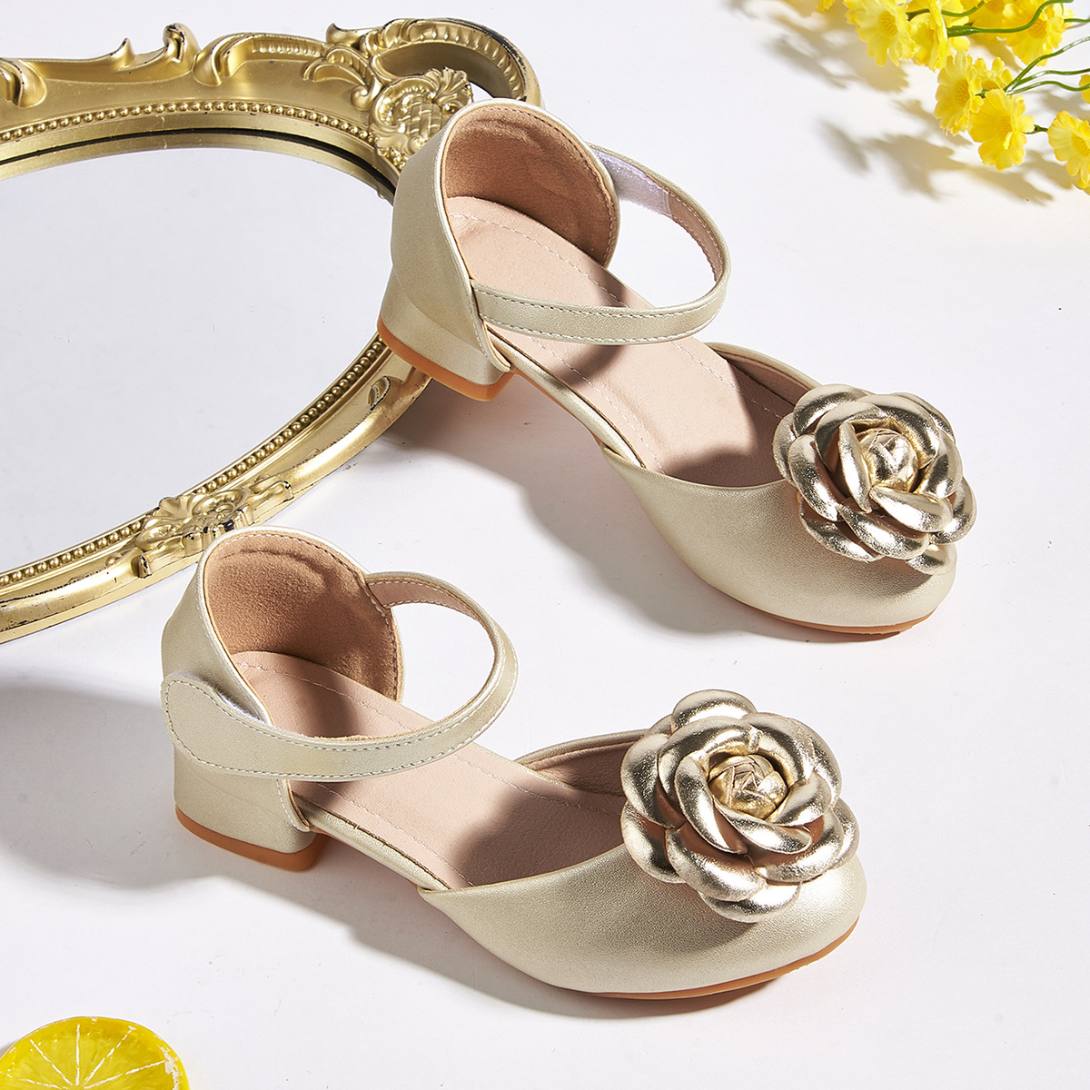 2025 새로운 어린이 공주 신발 여름 새로운 Baotou 하이힐 샌들 어린 소녀 두꺼운 굽 가죽 신발 유행 소녀스토어 가기