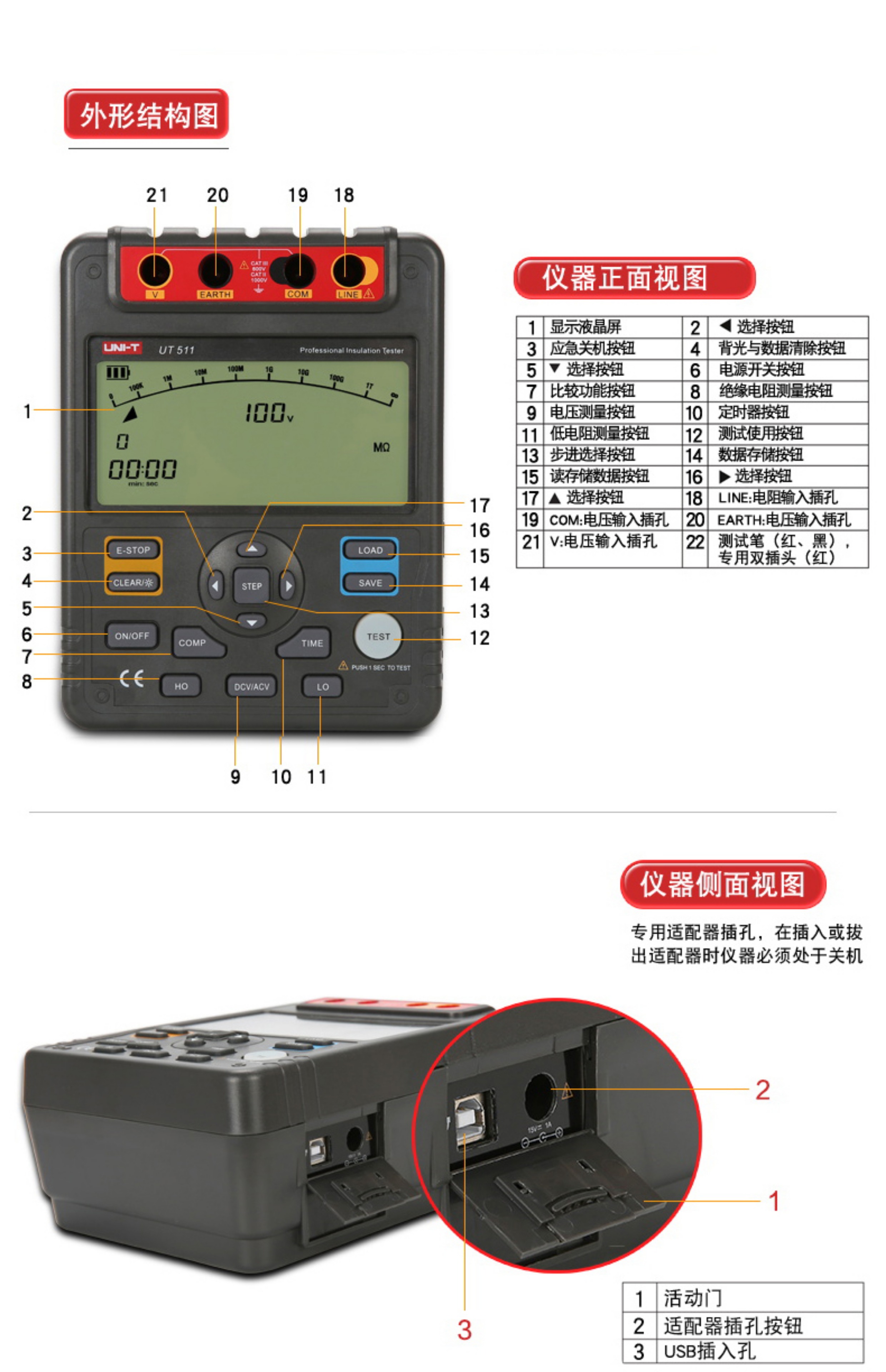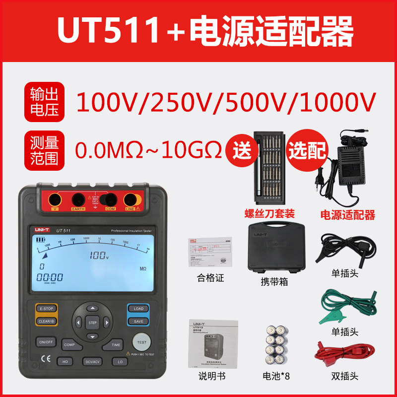• UT511 산업용 버전(1000V+10GΩ) + 전원 어댑터 + 드라이버 세트