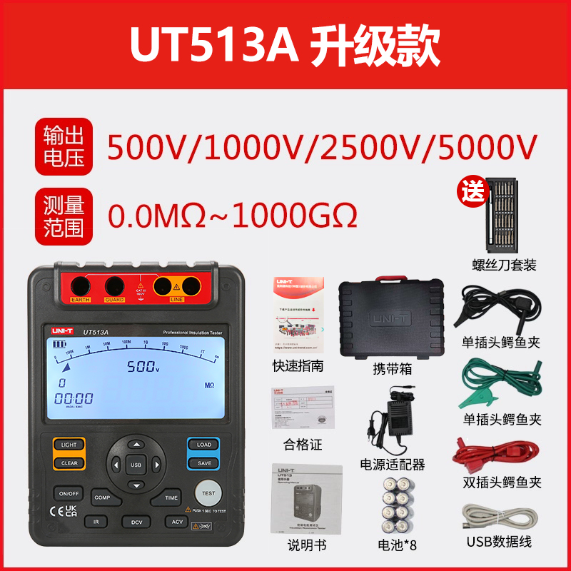 • UT513A 업그레이드 버전(5000V+1000GΩ) + 무료 드라이버 세트